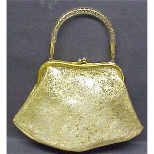 THIS IS LOVELY LADIES PURSE, PROBABLY DATING FROM 1930- 40 's, MADE FROM SPECIAL PLASTIC WITH TONS OF GOLD INCLUSIONS, LOVE THE ROUND HANDLE WITH TINY GOLD INCLUSIONS, EXCELLENT USED CONDITION, FREE FROM TEARS OR STAINS, MEASURES 11" X 8" AND WITH HANDLE 12", US BUYER PLEASE PAY 7.00 FOR SHIPPING PLUS INSURANCE.THANKS.