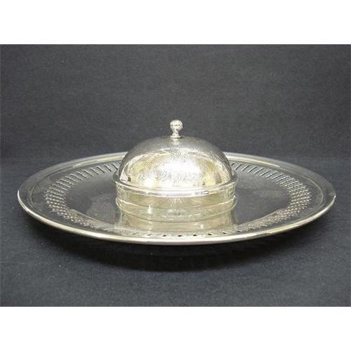 </font></strong>THIS IS BEAUTIFUL SILVER PLATED ROUND TRAY WITH GLASS DIP DISH AND DOMED LID-COVER, as per picture, Excellent used condition(Excellent-used is defined, no major damage, but it may have minor flaws from normal wear),Tray measures about 10 1/4" in diam., US Buyer to pay 9.00 for shipping plus insurance.THANKS.</font>