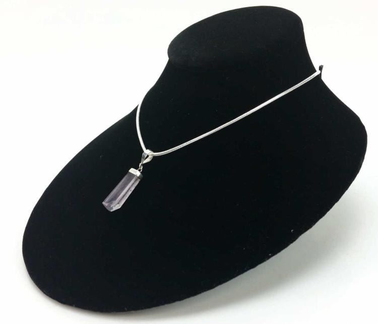 BEAUTIFUL 32 CT 6 POINT KUNZITE PENDANT. MOUNTED IN .925 STERLING SILVER. INCLUDES 20" 2 mm. CHAIN. 82.00 CTTW. ABSOLUTELY AMAZING .PICTURE DO CAN NOT BEGIN TO UNVBEIL THE BEAUTY OF THIS LIGHT ROSE PINK KUNZITE PENDANT Kunzite is a spiritual crystal. It releases us from the painful past traumas, eliminating the fear and opening our heart for new types of love. The tender energy of this crystal helps free our hearts from all the accumulated and blocked energies, making us more receptive and sensitive. Kunzite also possesses protective qualities.