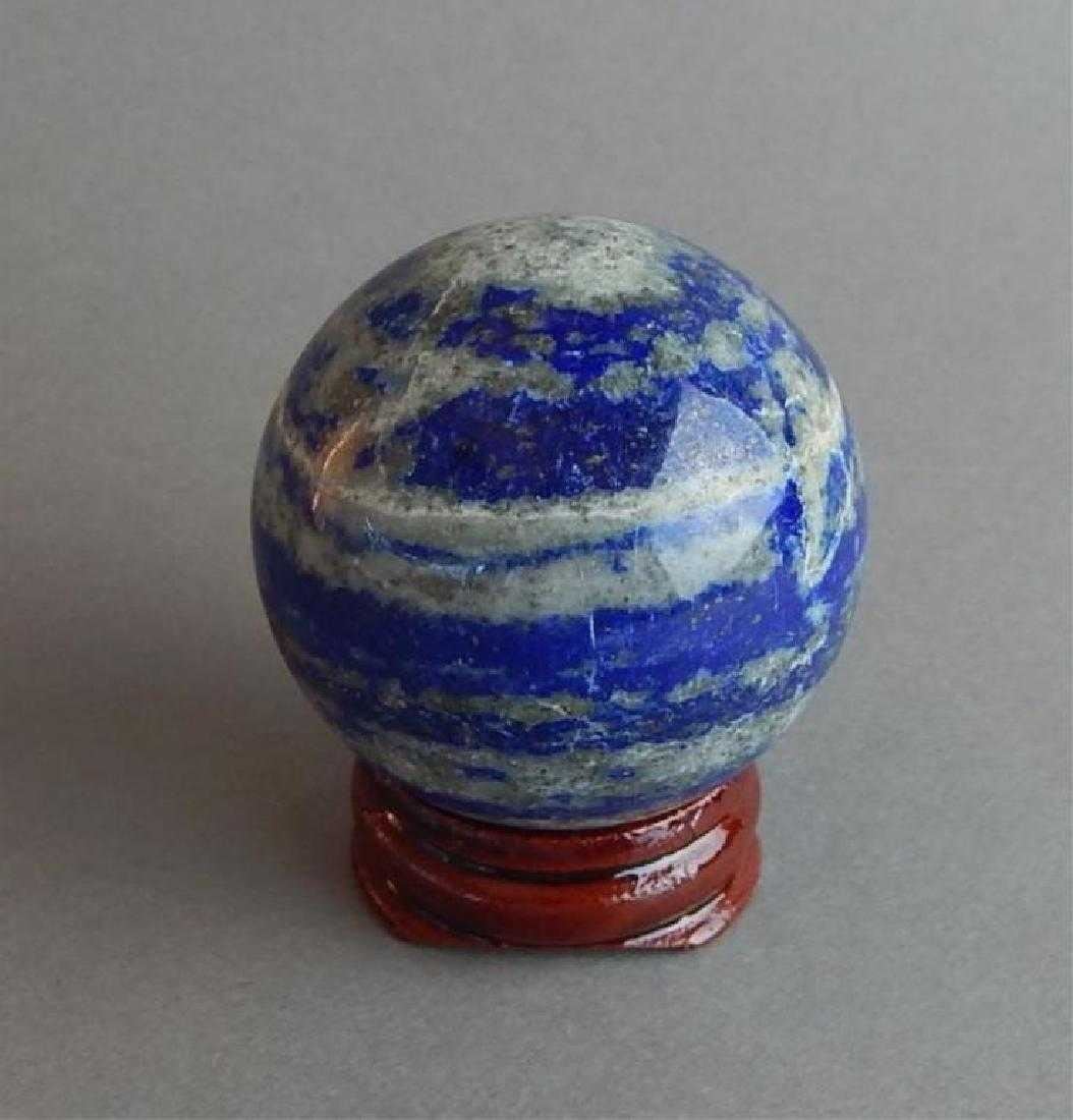 BEAUTIFUL 527 CT NATURAL BLUE LAPIS 40 mm. CRYSTAL BALL SPHERE. CRYSTALL BALL STAND IS INCLUDED.B LUE LAPIS IS THOUGHT TO STIMULATE THE HIGHER LEVELS OF THE MIND ENCOURAGING CLARITY AND OBJECTIVITY. IT IS ALSO BELIEVED TO ALLOW THE RELEASE OF STRESS BRINGING DEEP INNER PEACE.