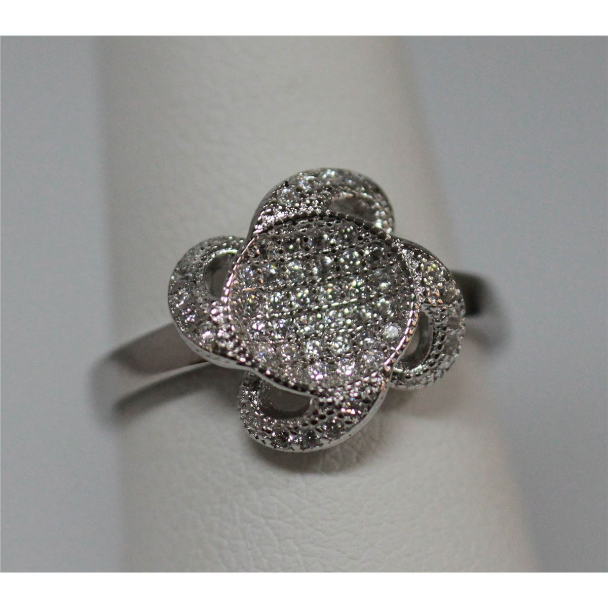 BEAUTIFUL .925 STERLING SILVER FLOWER RING W/ CZ EMBEDD **|**|** .925 STERLING SILVER FLOWER RING W/ CZ EMBEDDED STONES SIZE 7