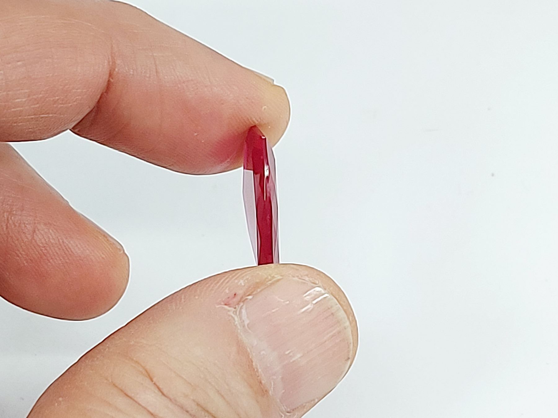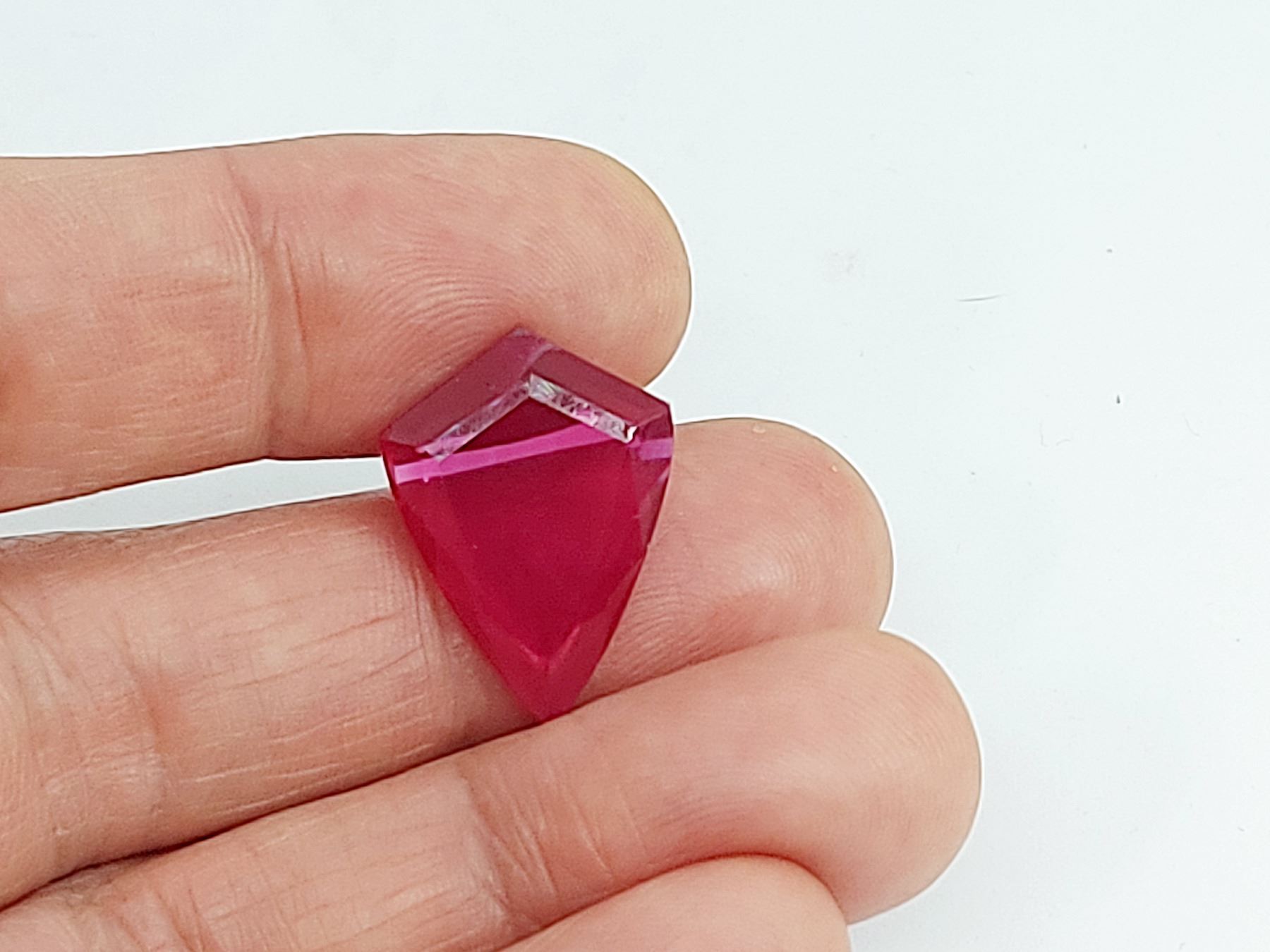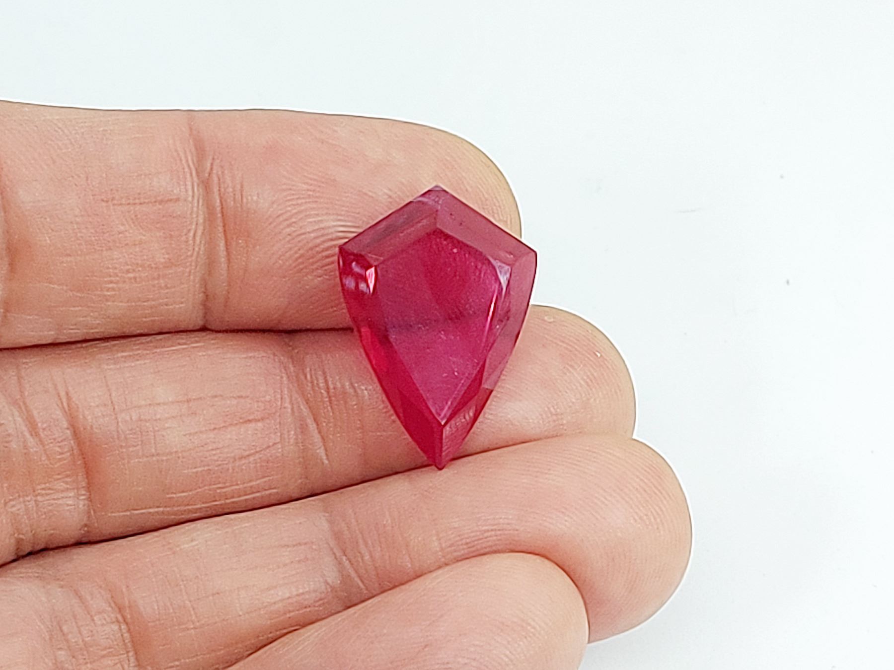 13.55 ct. 24.50 x 16.60 x 3.20 mm Colour: Pigeon Blood Red , Shape: Fancy Cut , Clarity: Loupe Clean Lab Created