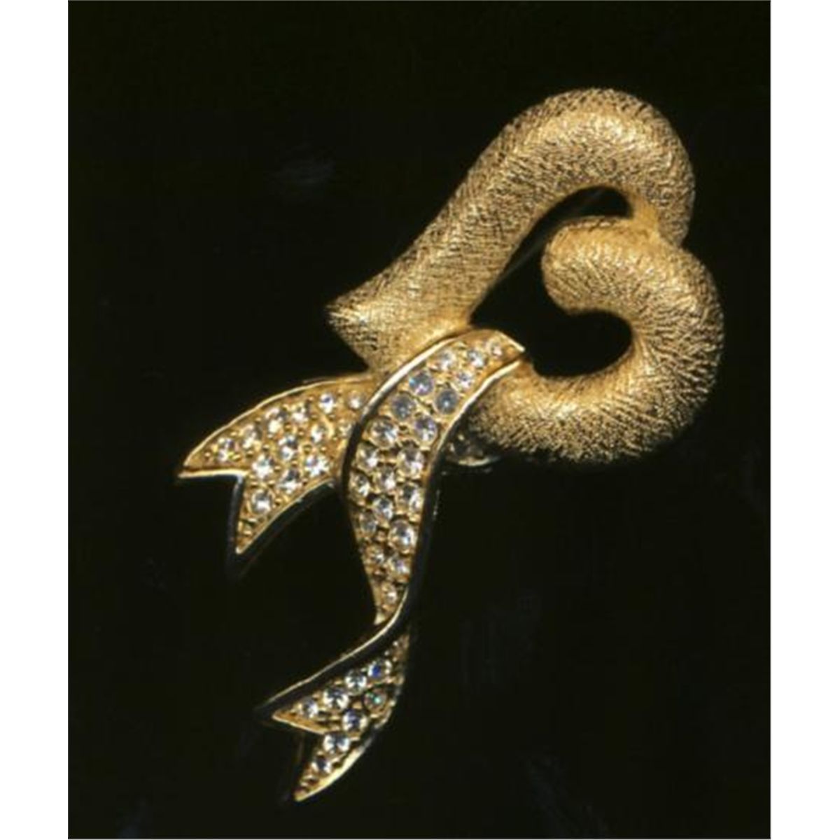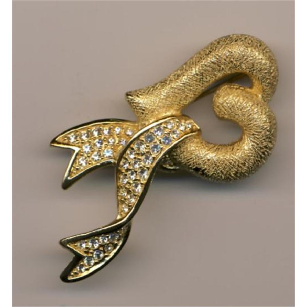 BEAUTIFUL CHRISTIAN DIOR RIBBON & HEART BROOCH, SIGNED, Measures approximately 1/4in high by 2 1/8in wide and comes complete in a black velvet pouch