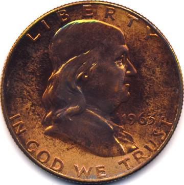 BEAUTIFUL COLOR 1963 SILVER FRANKLIN PROOF HALF DOLLAR-CAMEO
