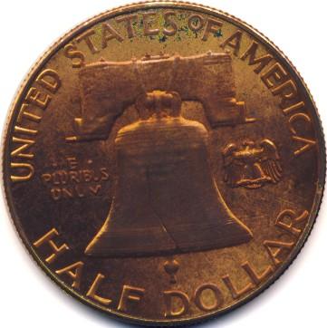 BEAUTIFUL COLOR 1963 SILVER FRANKLIN PROOF HALF DOLLAR-CAMEO