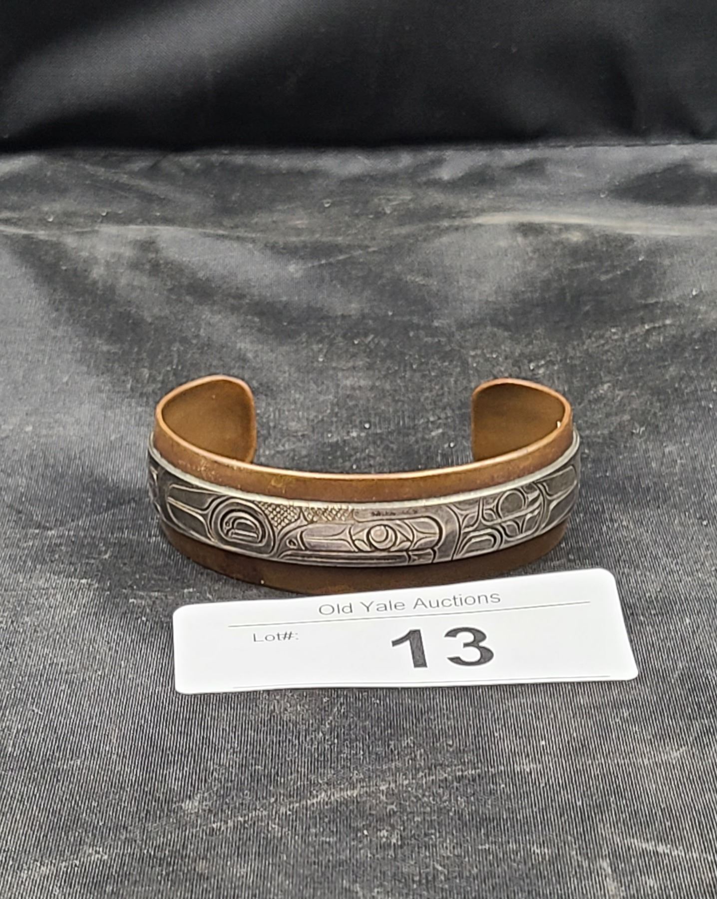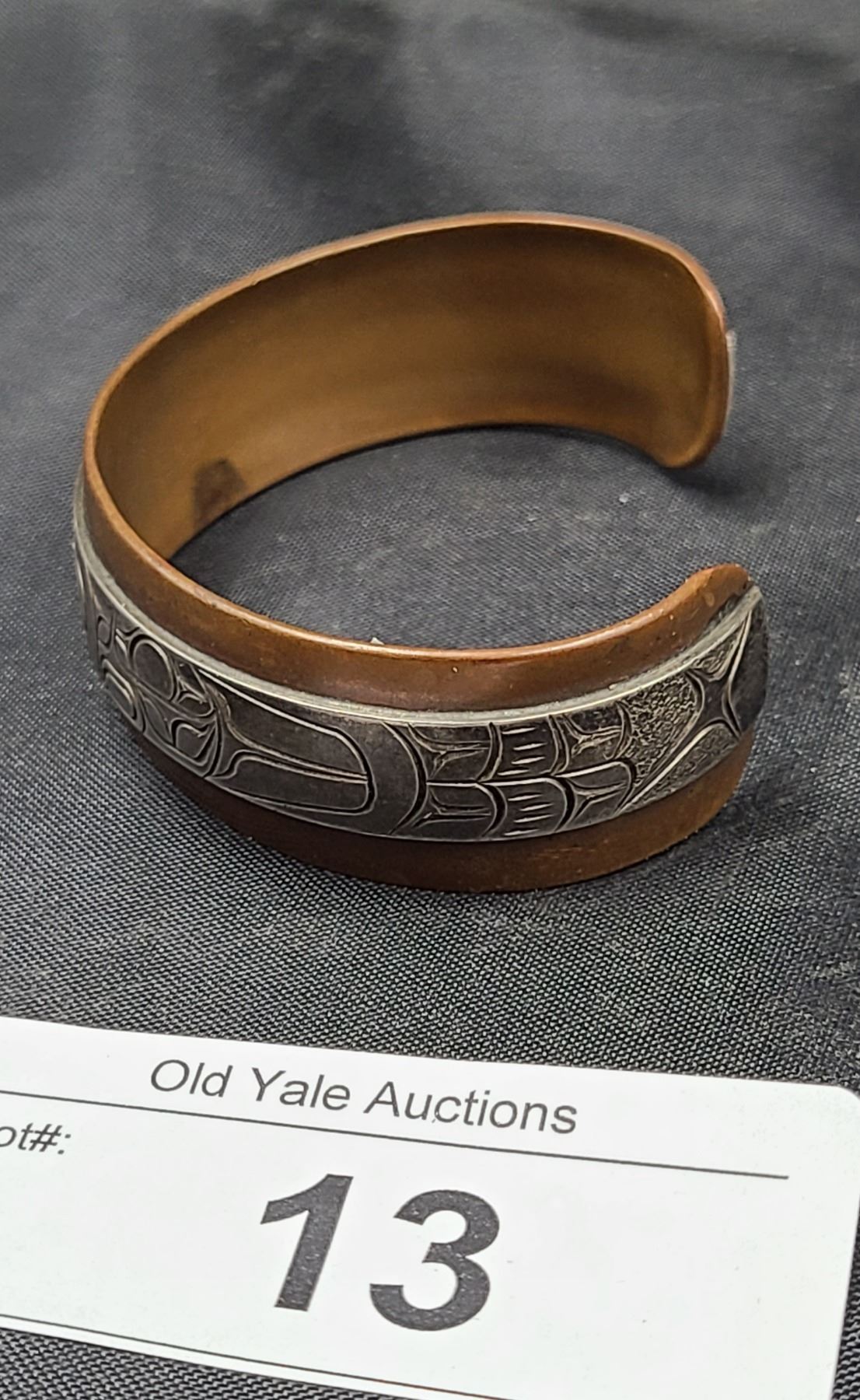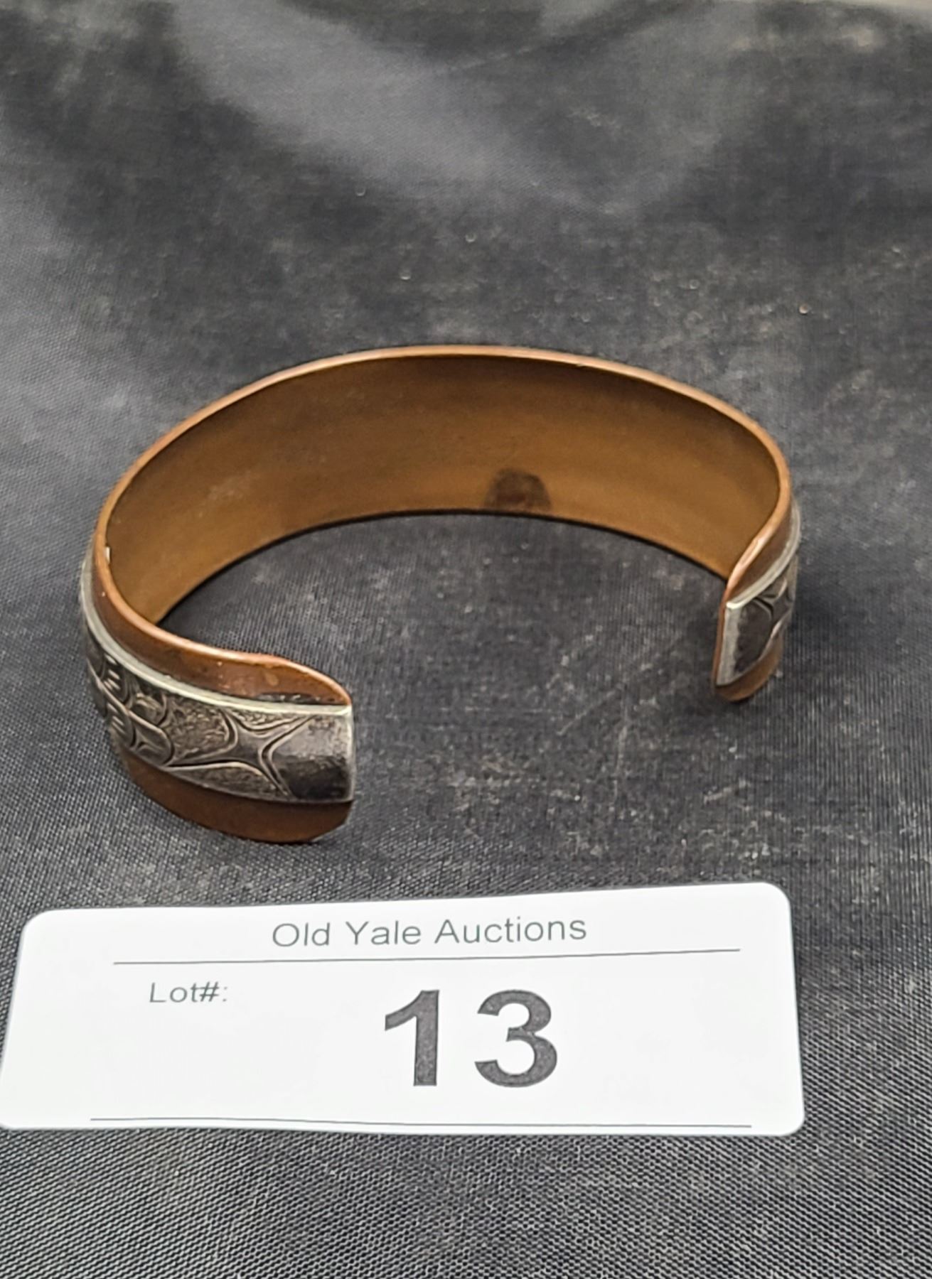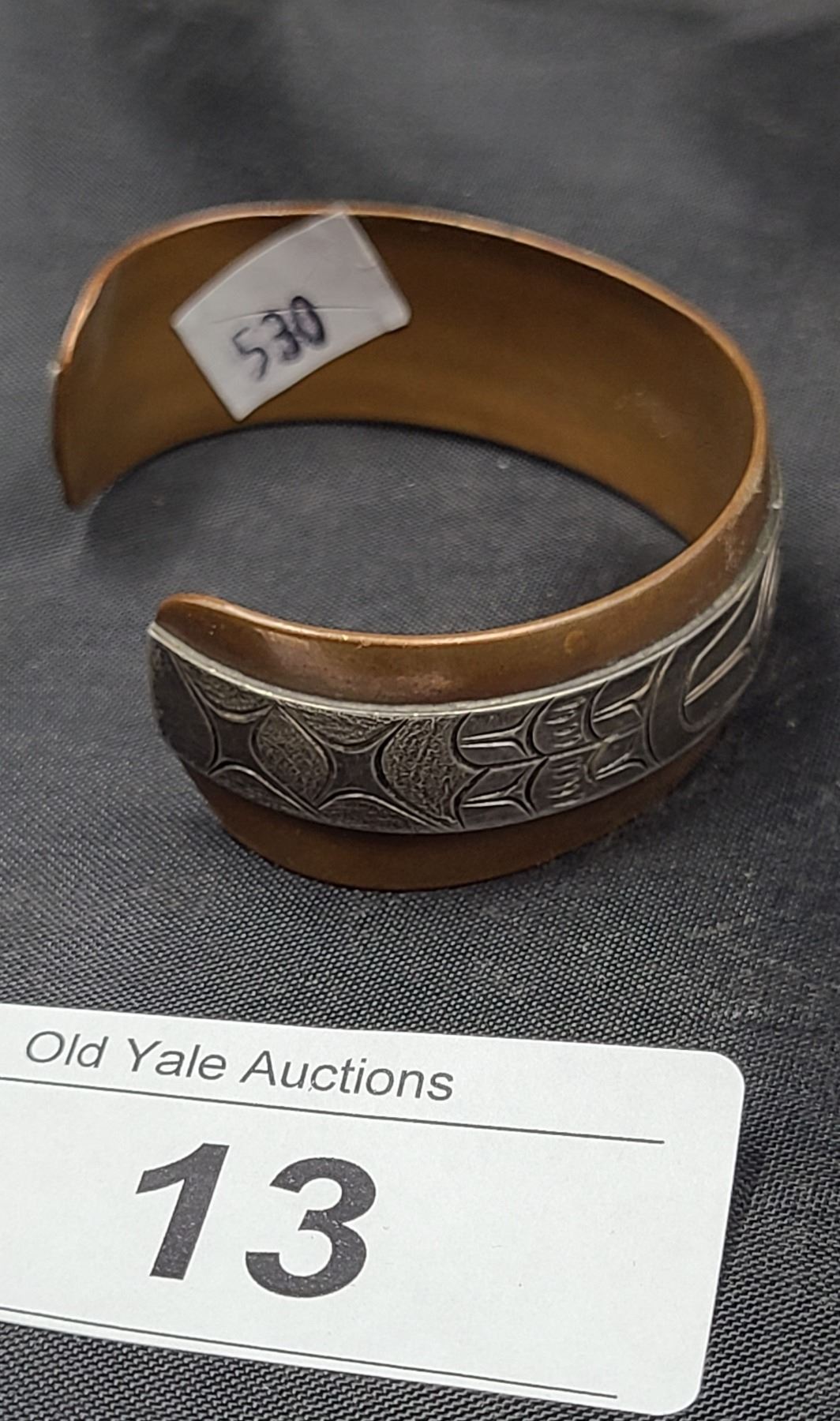 BEAUTIFUL COPPER/SILVER WEST COAST NATIVE ETCHED BRACELET