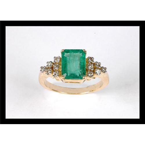 Diamond 0.31 ct , emerald 2.14 ct , yellow gold 18 ct . Ring size is 7 and can be altered up to two sizes plus or minus upon request free of charge .