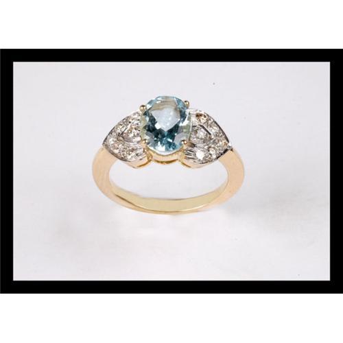 Diamond 0.40 ct , aquamarine 1.75 ct , yellow gold 18 ct . Ring size is 8 and can be altered up to two sizes plus or minus upon request free of charge .