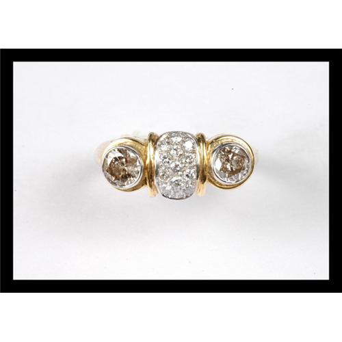 Diamond 0.85 + 0.45 = 1.30 ct , yellow gold 18 ct . Ring size is 7.5 and can be altered up to two sizes plus or minus upon request free of charge .