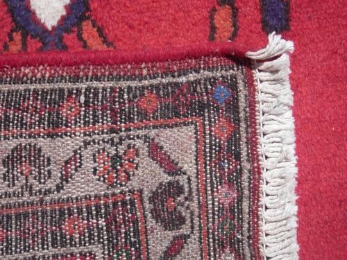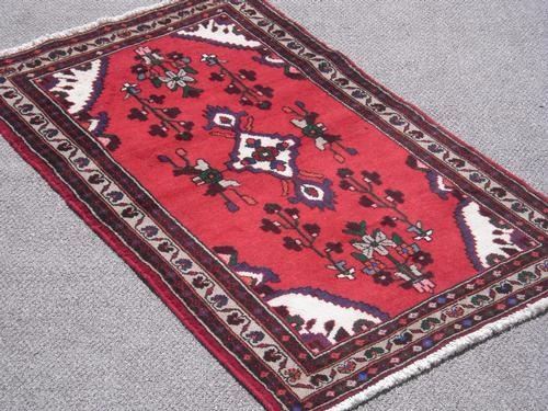 BEAUTIFUL FINE QUALITY HAND WOVEN PERSIAN HAMADAN. SIZE 5.2 X 3.0 FEET, MADE OF FINE QUALITY BABY LAMB'S WOOL PILE ON COTTON FOUNDATION, ALL NATURAL VEGETABLE DYE, INCORPORATING OPEN FIELD WITH A FREE FLOWING FLORAL PATTERN ON A RICH RED BACKGROUND, A CENTRAL MEDALLION AND AN INTRICATELY DETAILED FLORAL MULTI LAYERED BORDER. HAND WOVEN IN HAMADAN, Iran.