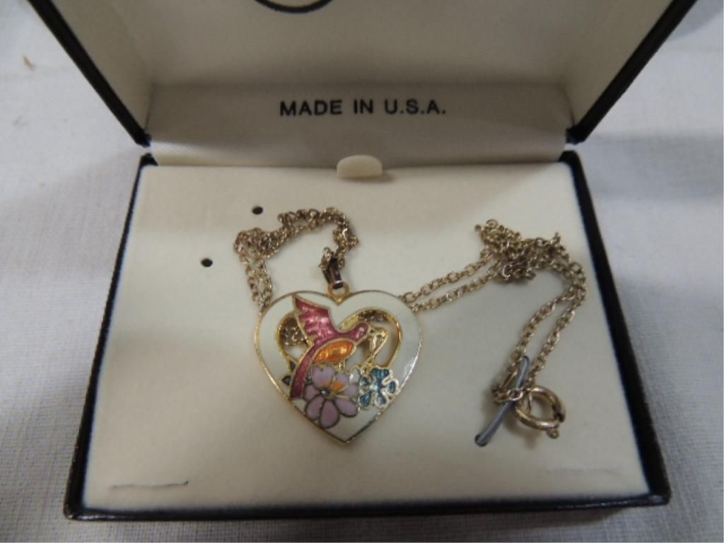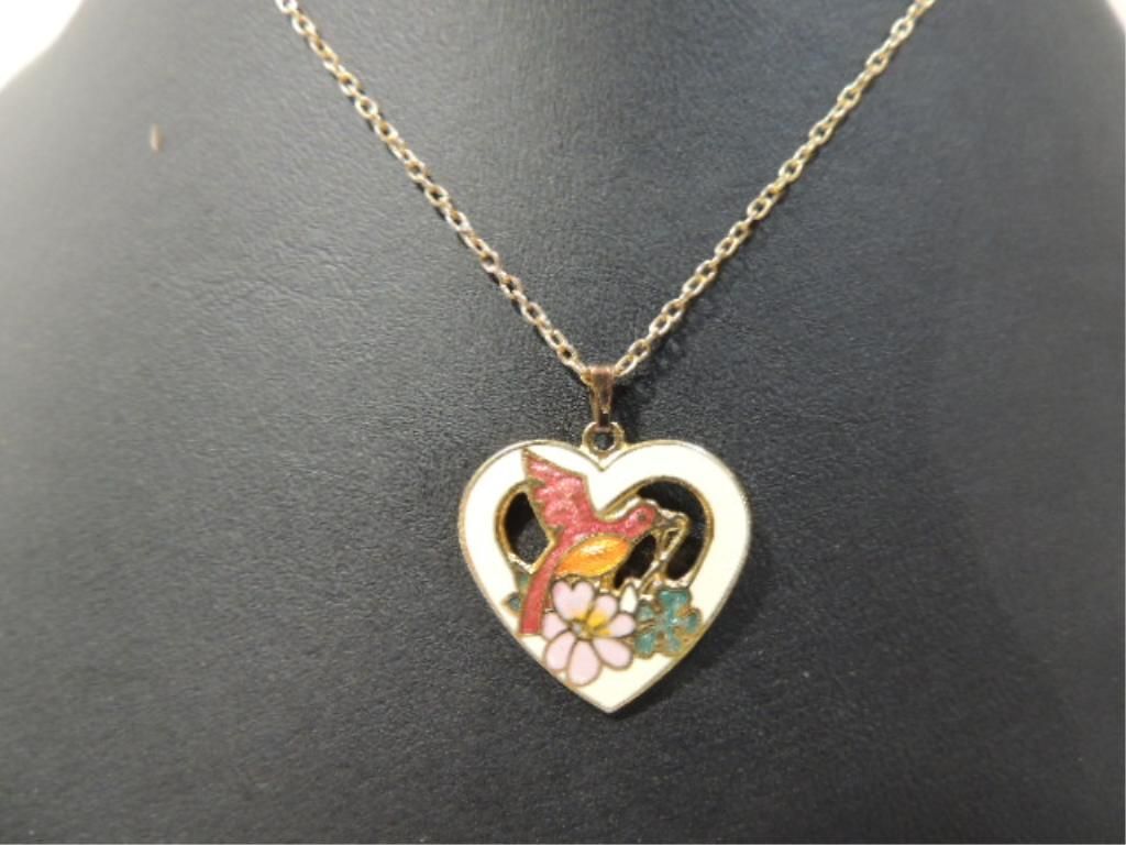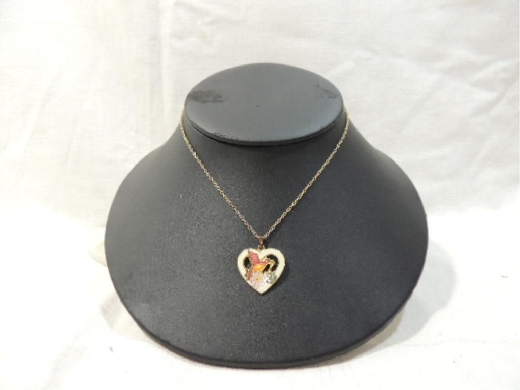 WOMANS NECKLACE HEART SHAPED CHARM BIRD & FLOWERS. SEE PICTURE FOR DETAILS