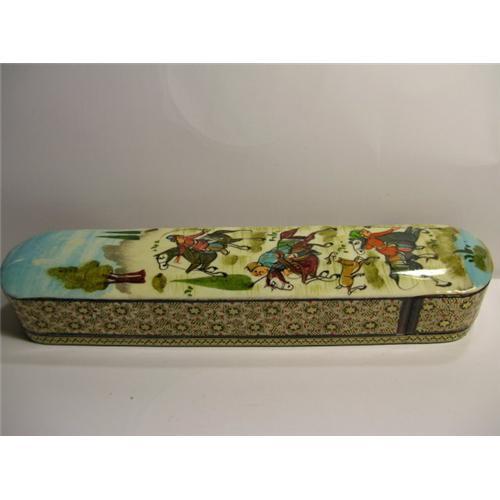 <tr><td>Type:MIDDLE EASTERN PEN BOX DUAL PEN HOLDER DESK SET/HUNTING SCENE W/GOLD INLAYED TRIM</td></tr>