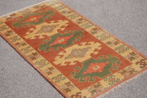 BEAUTIFUL HAND MADE TURKISH KONYA RUG, SIZE 5.4 X 3.0 FEET, MADE OF ALL NATURAL, VEGETABLE DYE, HAND WOVEN, WORSTED WOOL PILE ON COTTON FOUNDATION. KONYA RUGS ARE ONE OF THE LARGEST AND MOST IMPORTANT GROUPS OF THE CENTRAL ANATOLIAN RUG GROUP. THE TURKMAN INFLUENCE IN OLDER KONYA RUGS IS VERY STRONG. IN FACT THE OLDER THE RUG GENERALLY THE STRONGER THE USE OF TURKMAN ICONOGRAPHY. HAND WOVEN IN TURKEY.
