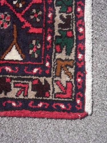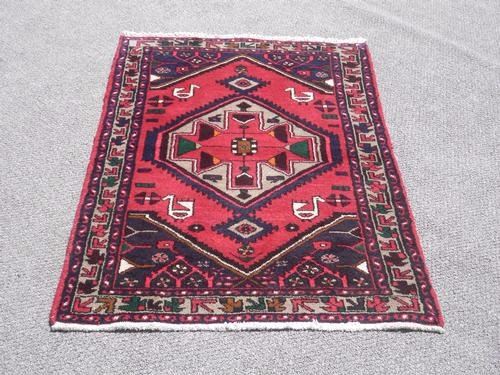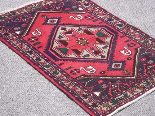 BEAUTIFUL HAND WOVEN PERSIAN HAMADAN. SIZE 4.5 X 3.0 FEET, MADE OF FINE QUALITY BABY LAMB'S WOOL PILE ON COTTON FOUNDATION, ALL NATURAL VEGETABLE DYE. HAND WOVEN IN HAMADAN, IRAN. LOOKING AT THIS PIECE, THE CONTRAST OF COLORS AND ITS GEORMTERIC DESIGN, CAPTURES YOUR ATTENTION. THE BEAUTY OF THE COLOR SELECTION, THE SOPHISTICATION OF ITS DESGIN CONSIDERING ITS CENTRAL MEDALLION AND THE CORNER COMPOSTIONS, IS WHAT MAKE THIS RUG A MASTERPIECE.
