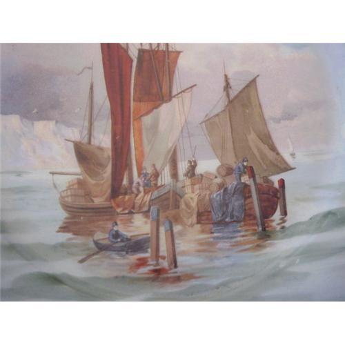 Gorgeous hand painted fishing/marine sceneic plate. Entitle Granville, it shows a lovely fishing coastal scene, highly detailed. The plate is not marked on the back but looks English or Germany made. It measures about 9 3/4 in diameter, in very fine condition, slight gold loss along the edge, otherwise perfect. A lovely decorative plate to add to your collection.