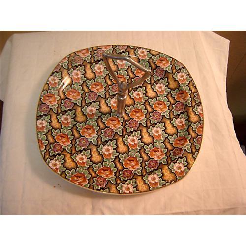 Here is a gorgeous patterned chintz bon bon dish with metal handle by Midwinter in Staffordshire, England.