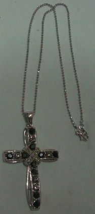 BEAUTIFUL NECKLACE & PENDANT-PENDANT IS A LARGE CROSS FILLED WITH BLUE & CLEAR GEMSTONES!! NECKLACE CAME OUT OF SAFE!! ***Coin, Currency & All Items Listed in this auction - Grades, Conditions and Values are not Safe Deposit Coins LLC Responsibilty. Grades, Condition and Values are determined by Consigner(s) & Buyers ONLY