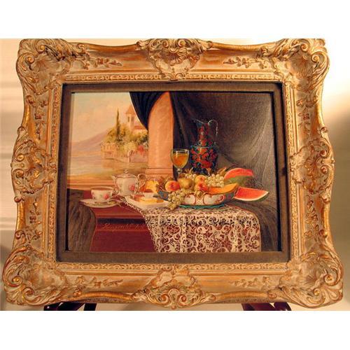 Beautiful look and detail is incredible. A Trompe l'oiel masterpiece. Several sales listing for this fine artist. </font>