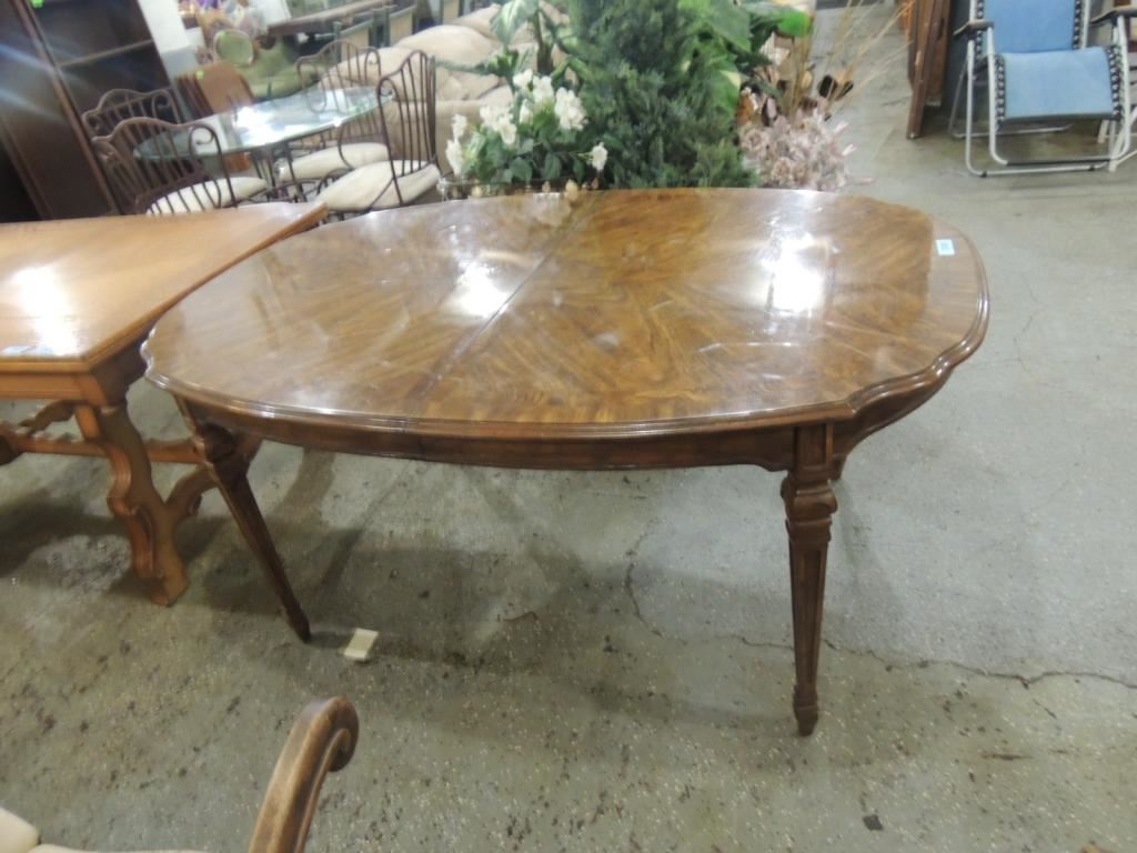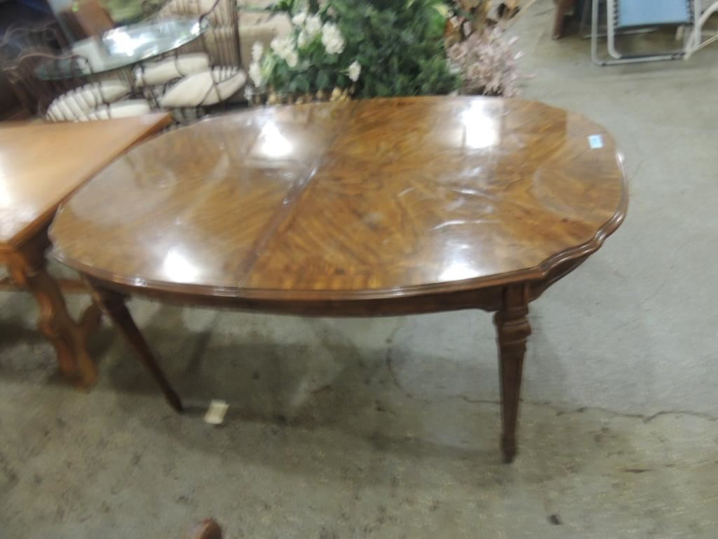 ELEGANT DINING TABLE OVAL TABLE WITH LEAVES DARK WOOD. FINSIHED. AS SHOWN SEE PHOTO FOR MORE DETAILS.