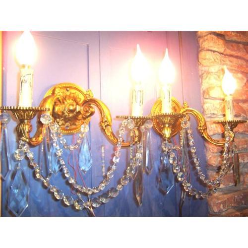 DELICATE ANTIQUES SCONCES , EXCELLENT CONDITION, BEAUTIFUL ORNATE AND RELIEF , ALL SOLID BRONZE SPLENDID WORK OF YOUR EPOCH , UNUSUAL ANTIQUES CUT PENDANTS,REWIRED , 2 LIGHTS , EACH ONE, READY FOR WORK. GO THROUGH PRIVATE COURIER , SPECIAL PACKING AND YOU RECEIVE IN ONLY 3 BUSINESS DAYS.
