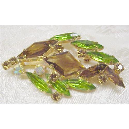 GORGEOUS VINTAGE RHINESTONE BROOCH,IT COMES IN BEAUTIFUL GREEN AND TOPAZ COLORED RHINESTONES: AS PER PICTURE,EXCELLENT CONDITION.Measures about 2 1/4" in long.THANKS for looking!