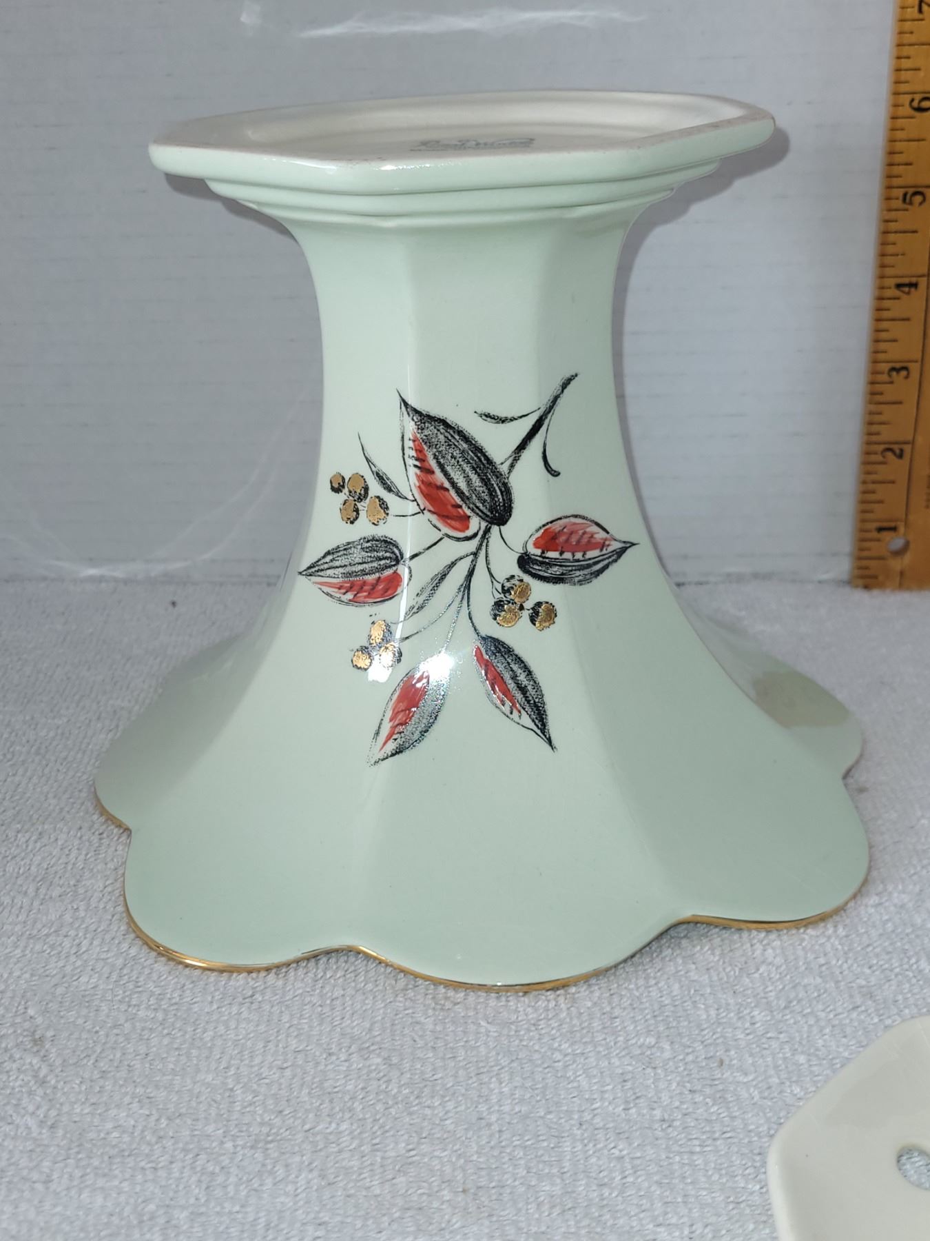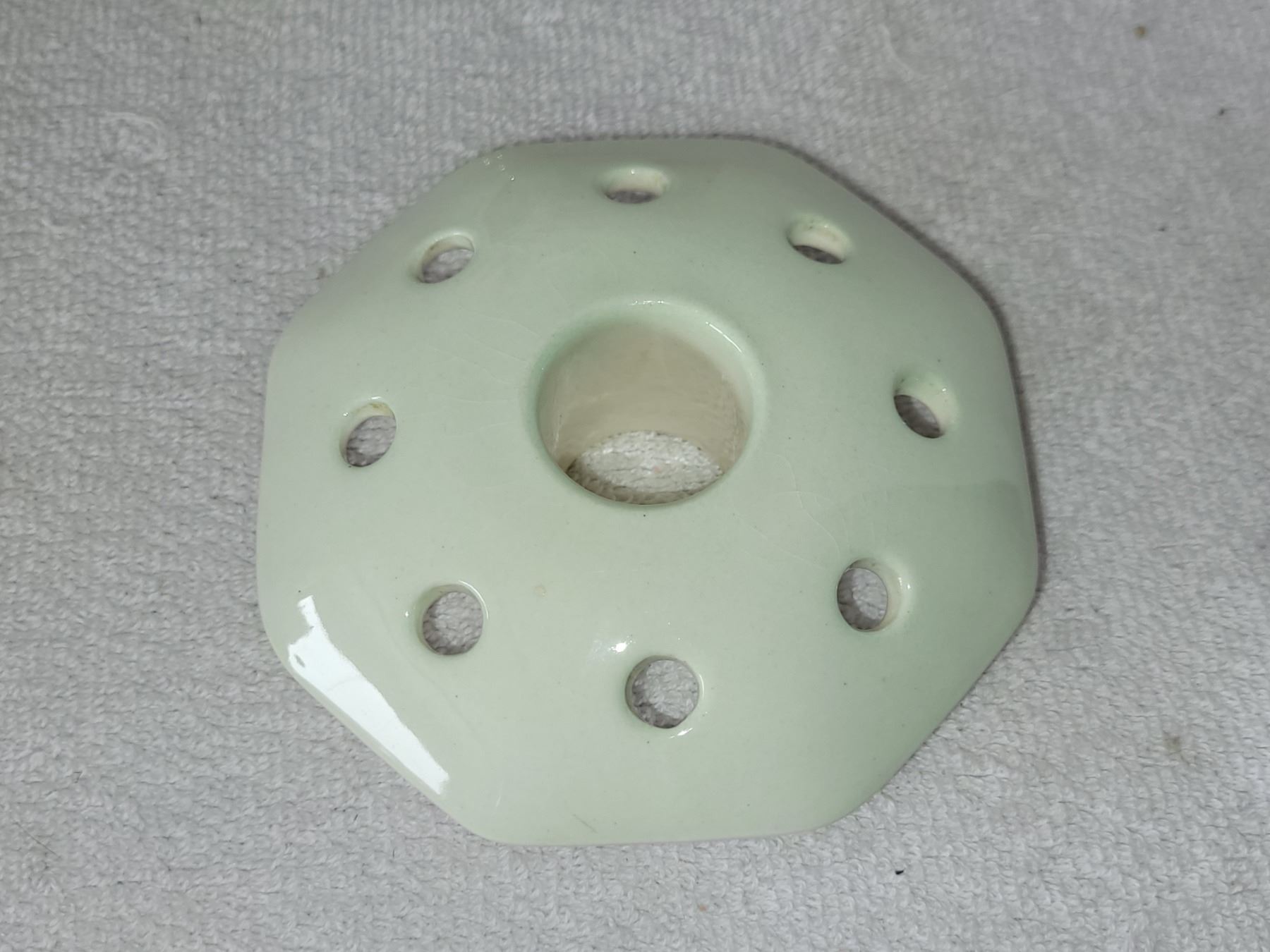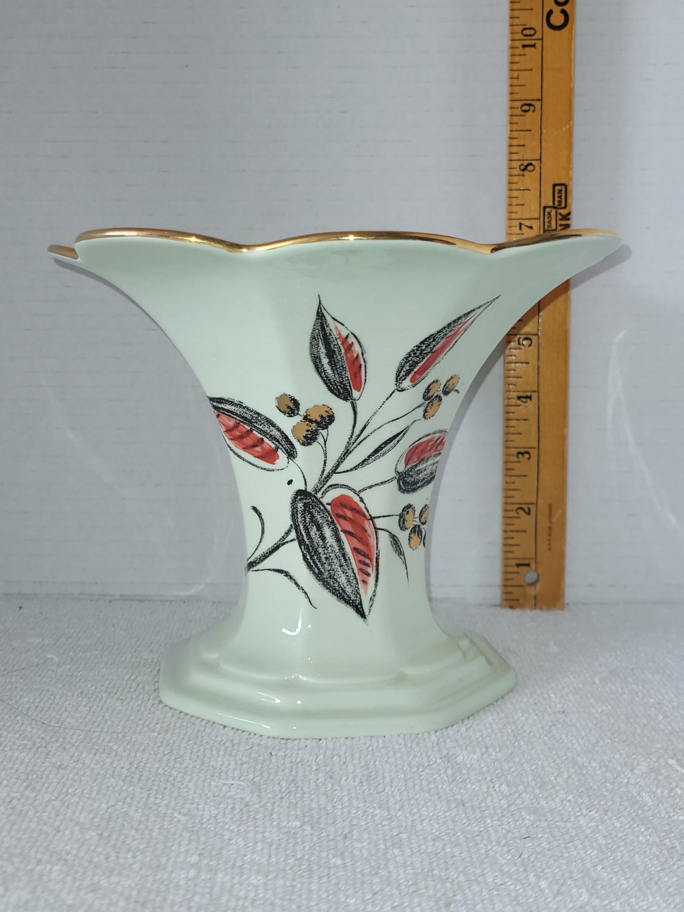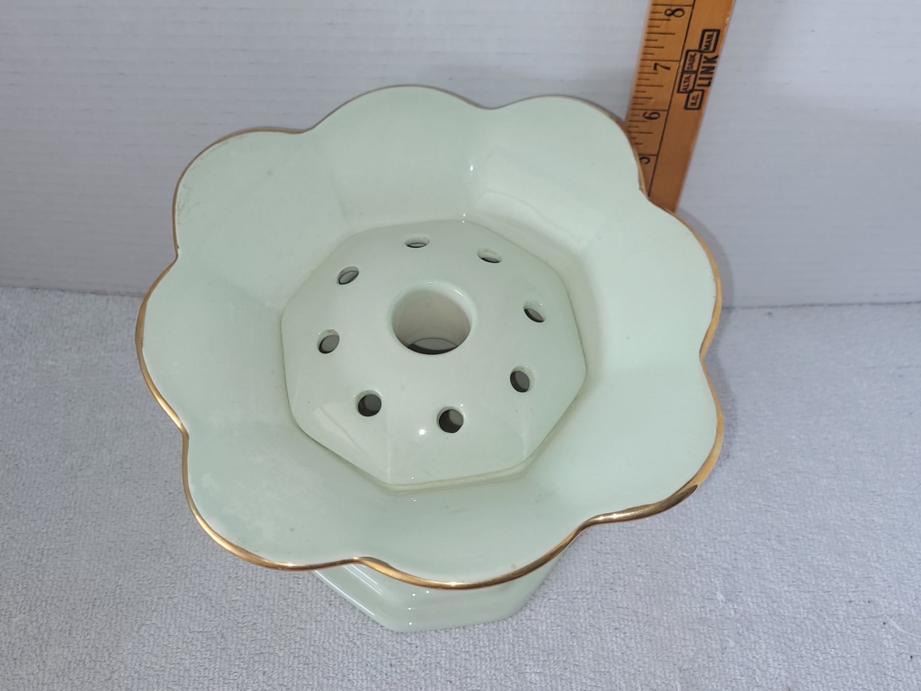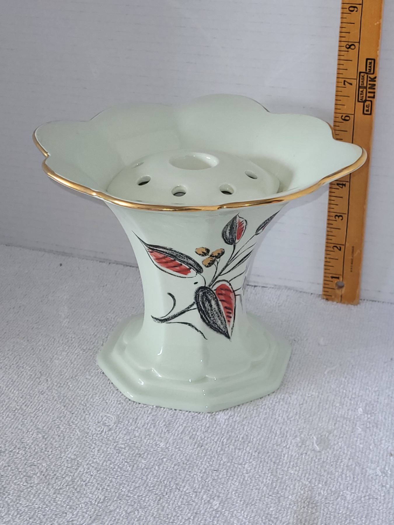BEAUTIFUL ROYAL WINTON GRIMWADES LARGE FLWOER VASE WITH STEM HOLDERS. PASTEL FLORAL DESIGN (NOT CHINTZ). MADE IN 1951+. MEAURES 6.25" WIDE, 8.25" TALL.