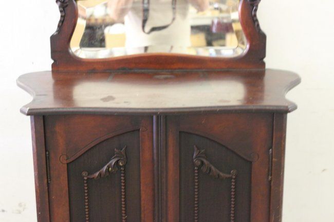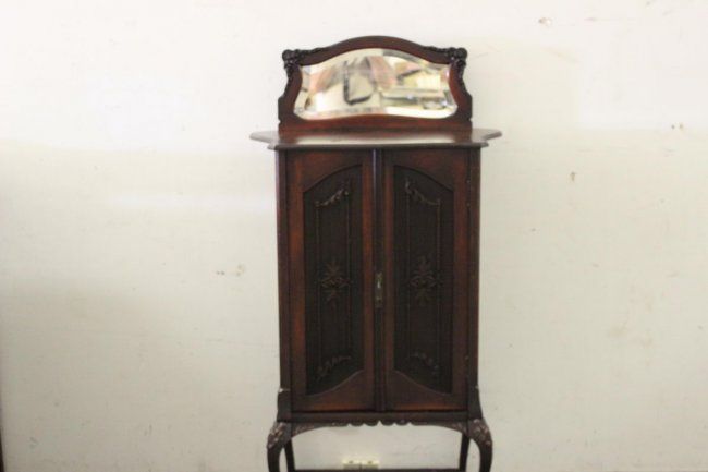 BEAUTIFUL SHEET MUSIC CABINET WITH SHAPED TOP, BOWED