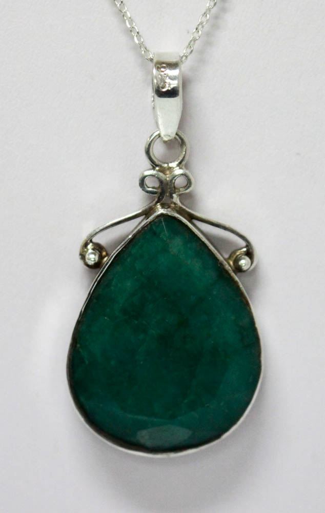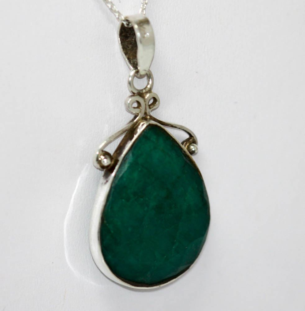 BEAUTIFUL SILVER PENDANT WITH EMERALD GREEN STONE CTW 1 **|**|** SILVER PENDANT WITH GREEN EMERALD STONE CTW 18.90