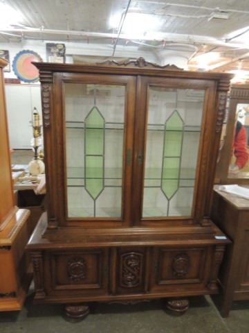 ART DECO STYLE 1940'S ERA CHINA CABINET WITH 2 DOORS AT THE TOP AND 2 DOORS AT THE BOTTOM. BEAUTIFUL CONDITION. 51" X 18" X 65" TALL.