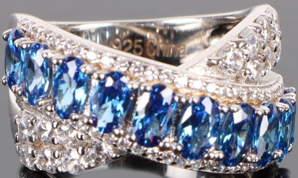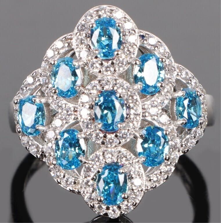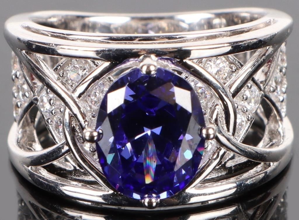 Beautiful Sterling Silver various gemstone rings lot of 4 to include: Neon Apatite, Tanzanite, Cubic Zirconia
