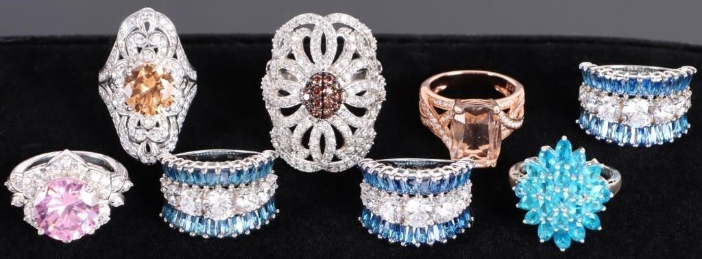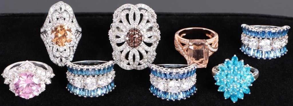 Beautiful Sterling Silver various gemstone rings lot of 8 to include: Quartz, Tourmaline, Apatite, Cubic Zirconia.