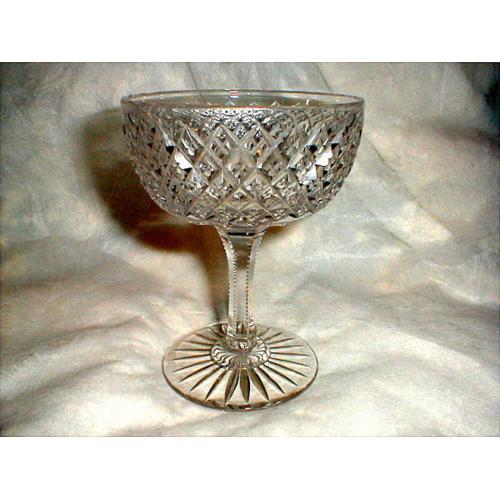 HERE IS A BEAUTIFUL VINTAGE WINE GOBLET IN THE STRAWBERRY CUT PATTERN WITH THE SCISSOR CUT STEM. THIS GOBLET MEASURES 4 1/2 IN. TALL AND 3 1/2 IN. IN DIAMETER AND IS IN VERY GOOD CONDITION WITH NO CHIPS, CRACKS, CLOUDINESS, SCRATCHES, OR REPAIRS.