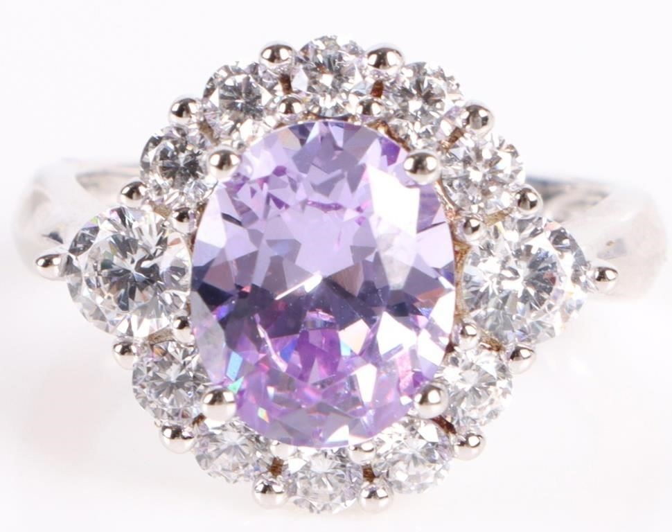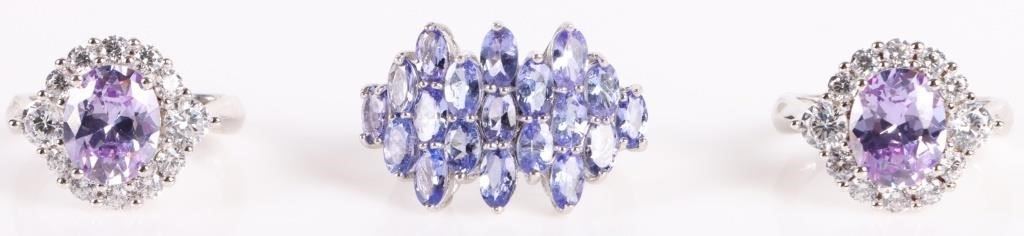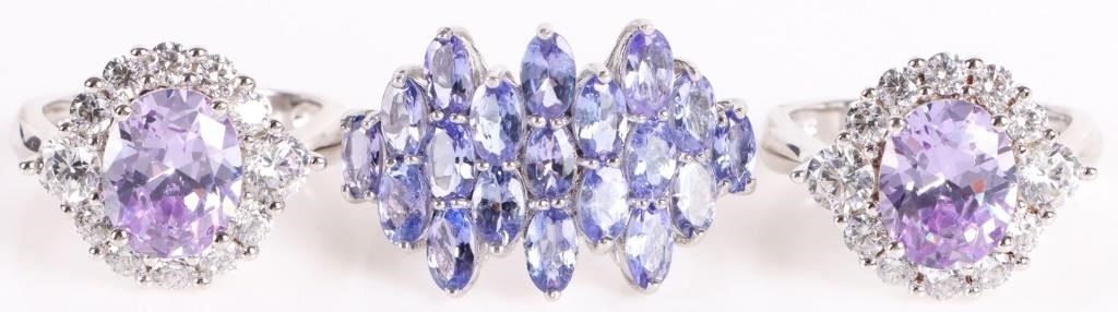 Beautiful various gemstone ladies rings lot of 3 to include: Tanzanite, Tourmaline, Cubic Zirconia