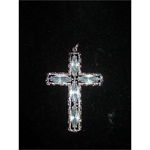 <tr><td>Type:ETCHED SILVERTONE CROSS W/LG.BLUE MARQUIS RHINESTONES</td></tr>