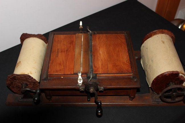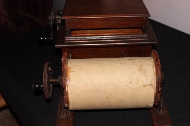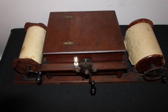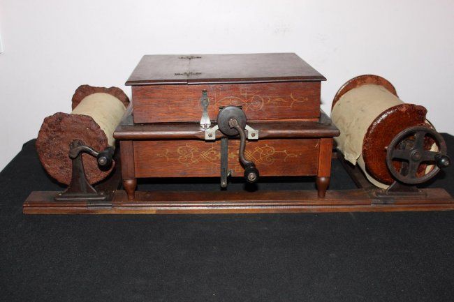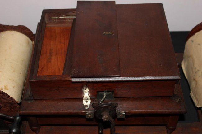 BEAUTIFUL WALNUT CRANK ORGAN IN NEED OF RESTORATION BUT NO BREAKS IN WOOD - CONDITION GOOD