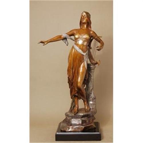 BEAUTIFUL WOMAN WITH HARP BRONZE BY DROUOT
