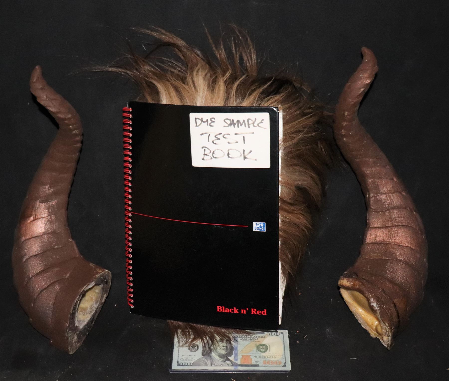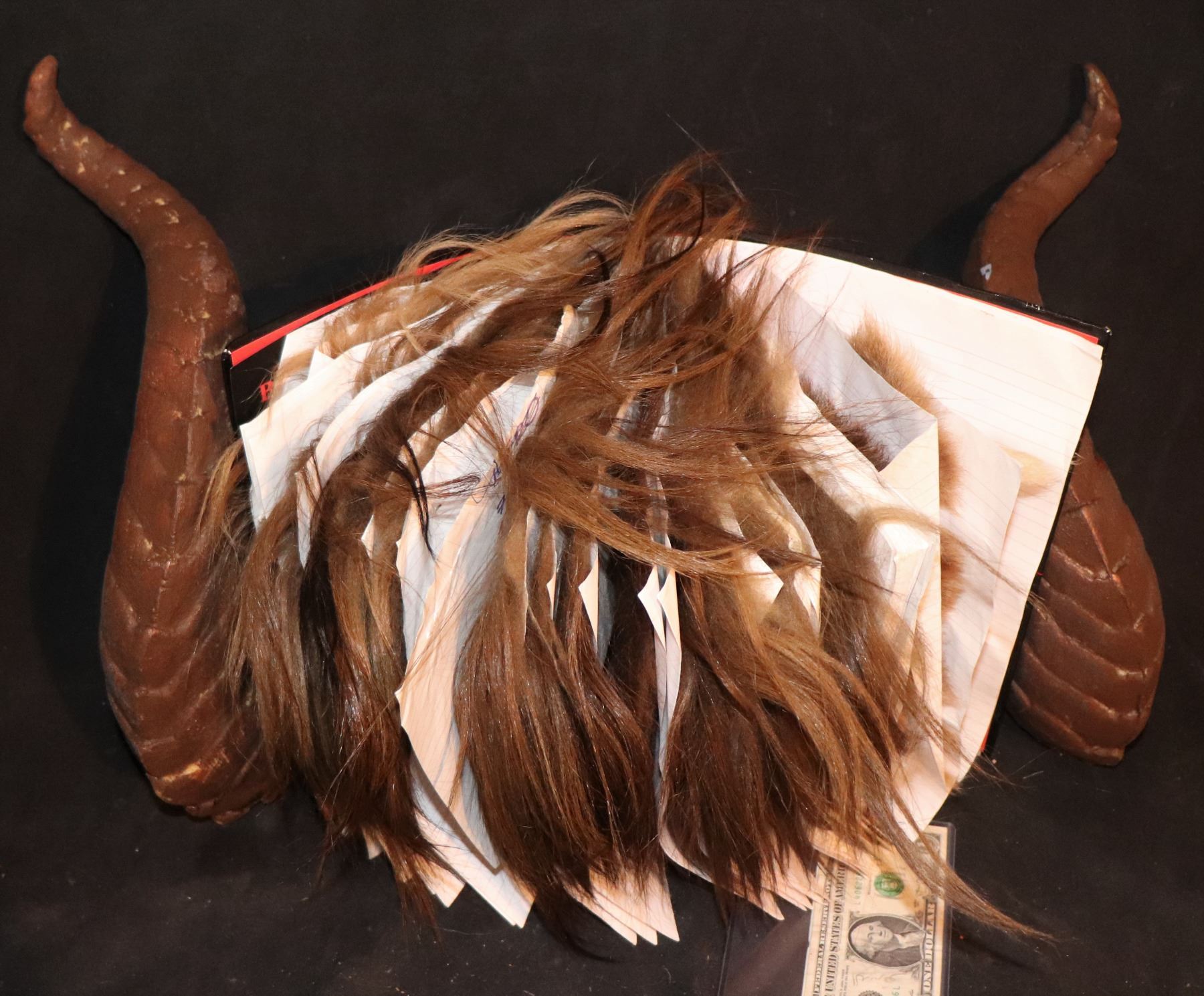 The horns look to be a paint and or materials test. The Fur Sample Book has over 60 pages of notes with 57 different Fur Samples. Some match the final costume, where others may not.