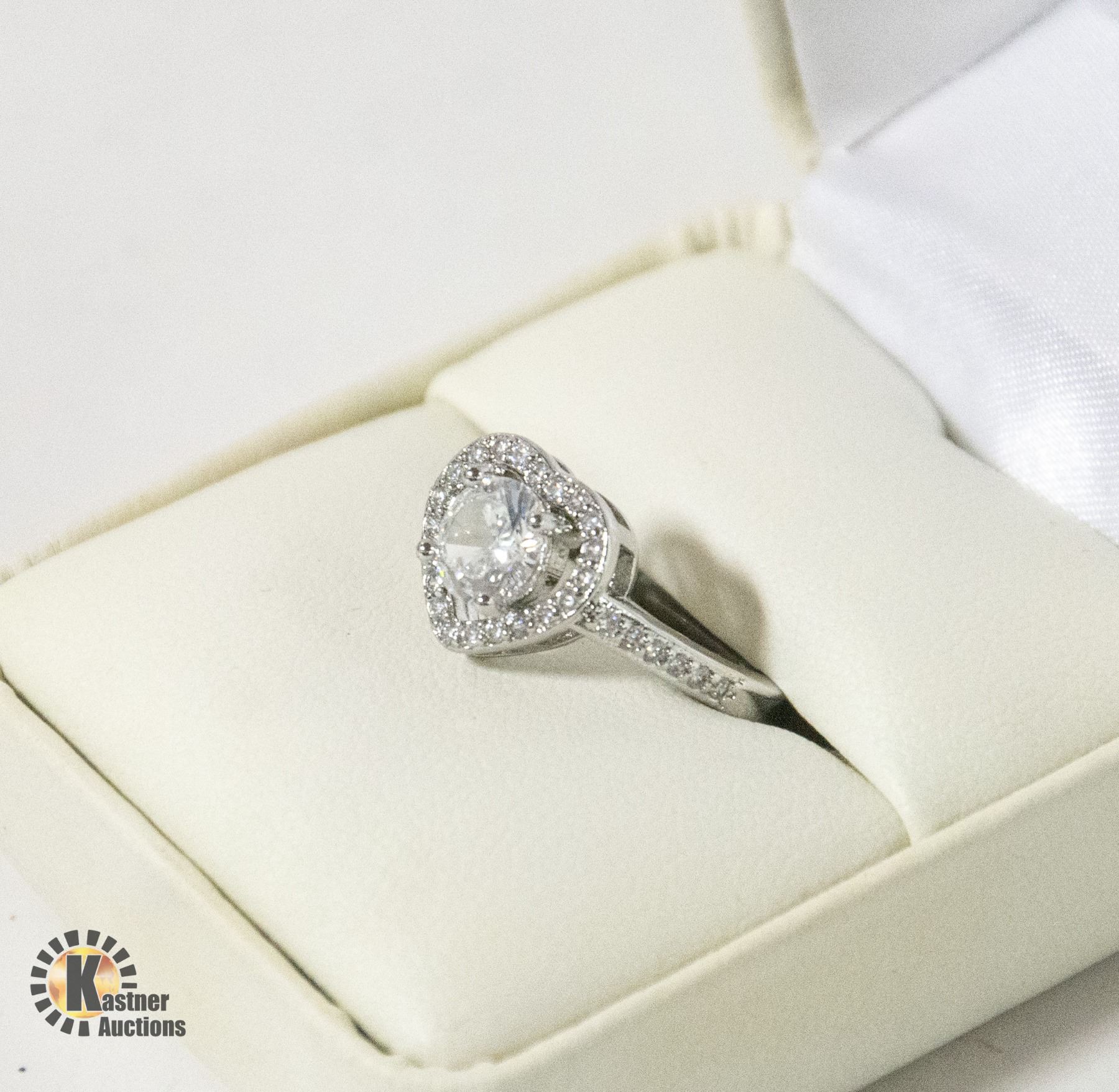PLATED HEART SHAPED ENGAGEMENT RING SZ 7 **ALL ITEMS MUST BE REMOVED BY 5PM SATURDAY, DECEMBER 21ST 2024. ALL REMAINING ITEMS WILL BE SUBJECT TO A $6.00 PER DAY STORAGE CHARGE. ANY ITEMS REMAINING AFTER MONDAY, JANUARY 6TH 2025 WILL BE CONSIDERED FORFEITED. NO REFUNDS WILL BE ISSUED FOR FORFEITED ITEMS. TO SCHEDULE A PICK UP APPOINTMENT CLICK HERE