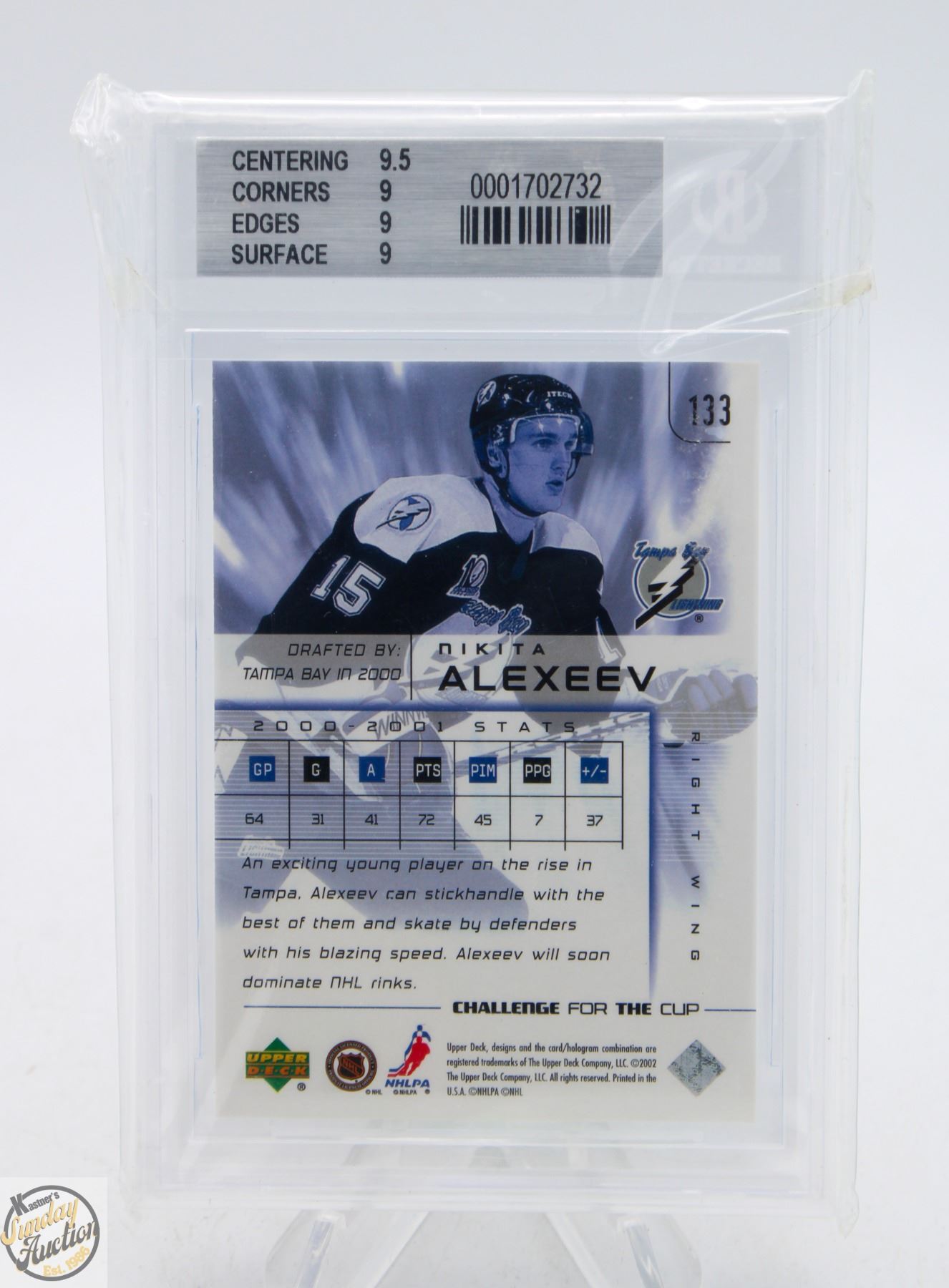 FOR THE CUP #133 NIKITA ALEXEEV UP AND COMERS TAMPA BAY LIGHTNING **ALL ITEMS MUST BE REMOVED BY 5PM SATURDAY, OCTOBER 4TH 2025. ALL REMAINING ITEMS WILL BE SUBJECT TO A $6.00 PER DAY STORAGE CHARGE. ANY ITEMS REMAINING AFTER MONDAY, OCTOBER 20TH 2025 WILL BE CONSIDERED FORFEITED. NO REFUNDS WILL BE ISSUED FOR FORFEITED ITEMS. TO SCHEDULE A PICK UP APPOINTMENT CLICK HERE