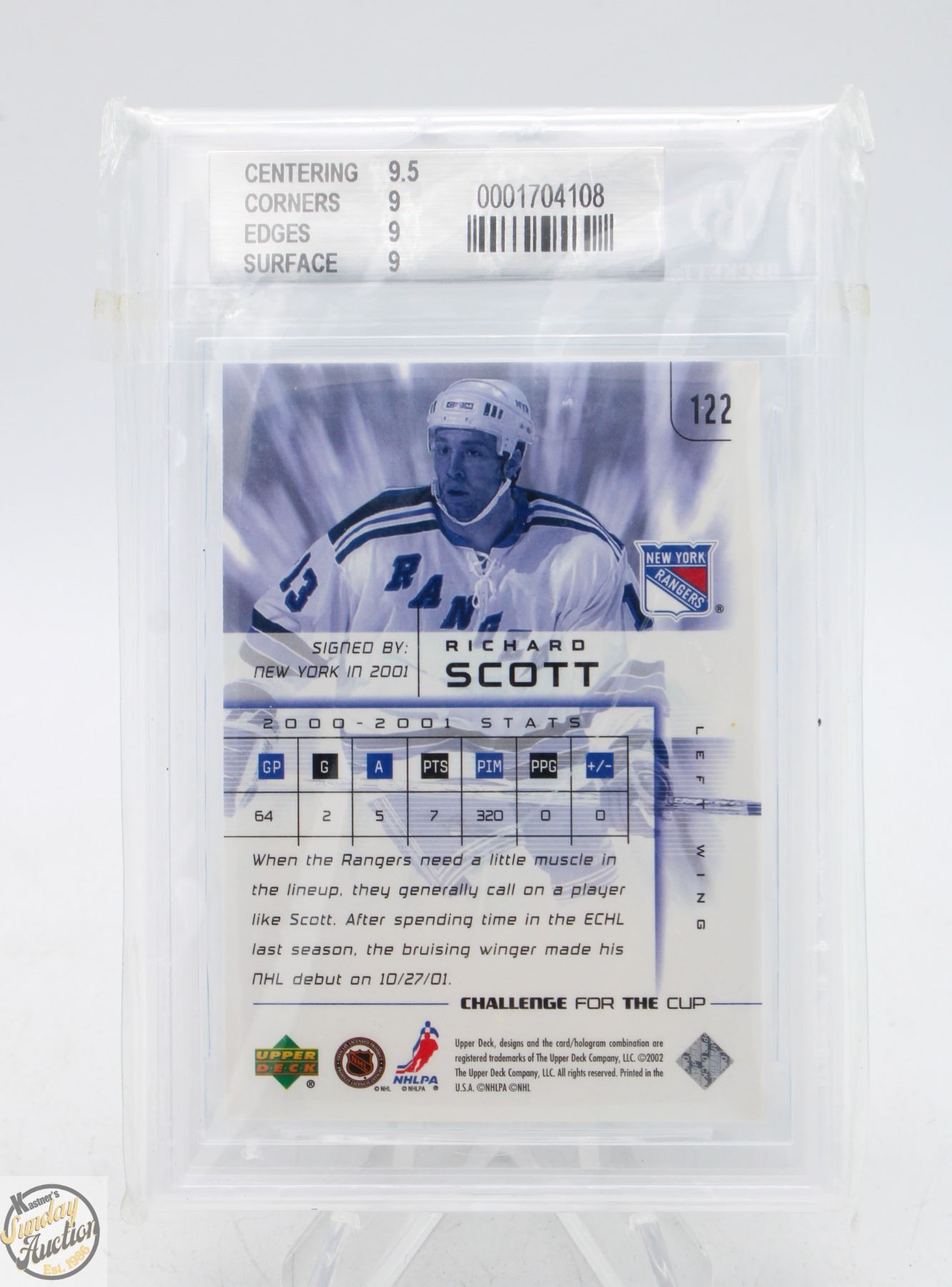 FOR THE CUP #122 RICHARD SCOTT UP AND COMERS NEW YORK RANGERS **ALL ITEMS MUST BE REMOVED BY 5PM SATURDAY, OCTOBER 4TH 2025. ALL REMAINING ITEMS WILL BE SUBJECT TO A $6.00 PER DAY STORAGE CHARGE. ANY ITEMS REMAINING AFTER MONDAY, OCTOBER 20TH 2025 WILL BE CONSIDERED FORFEITED. NO REFUNDS WILL BE ISSUED FOR FORFEITED ITEMS. TO SCHEDULE A PICK UP APPOINTMENT CLICK HERE
