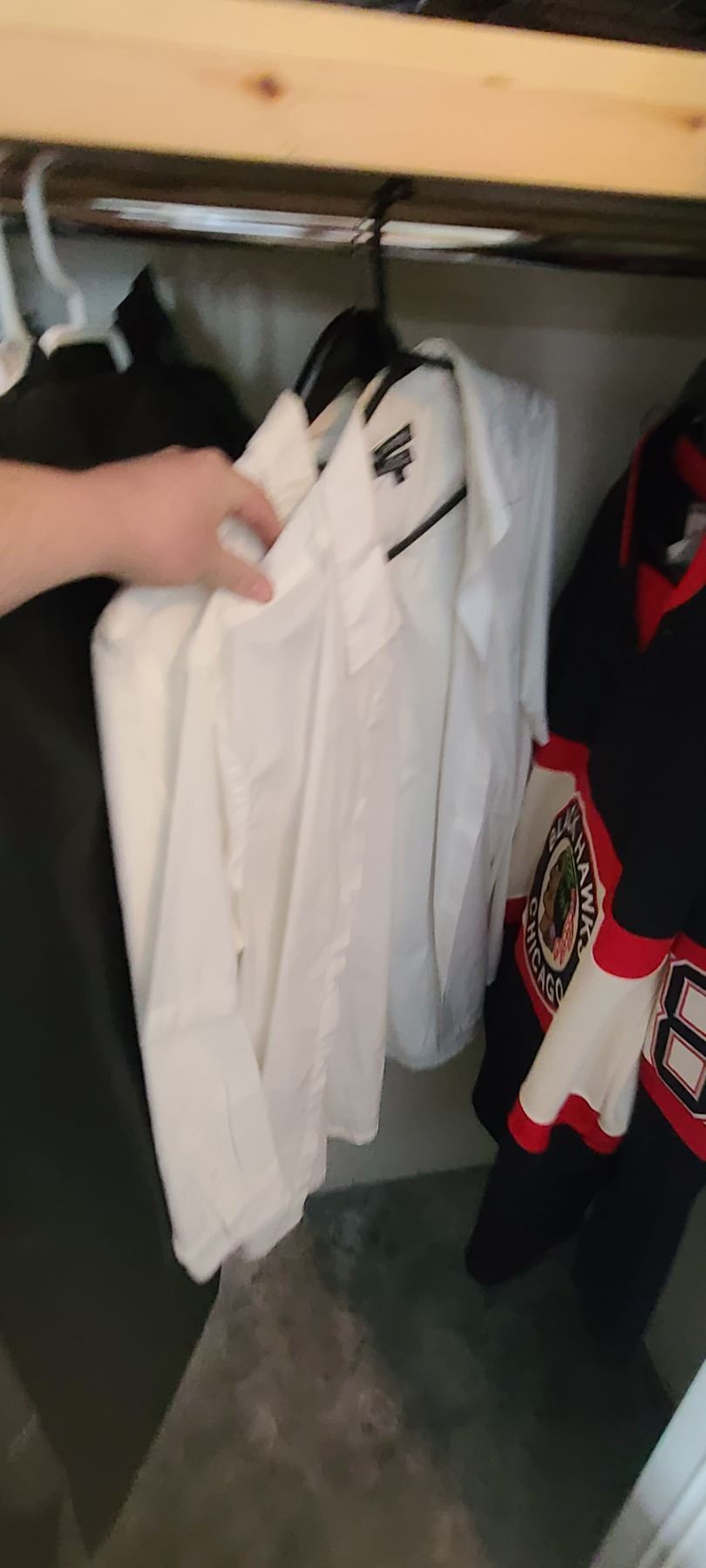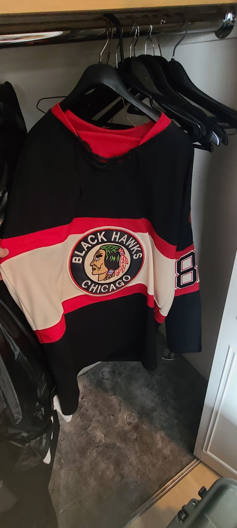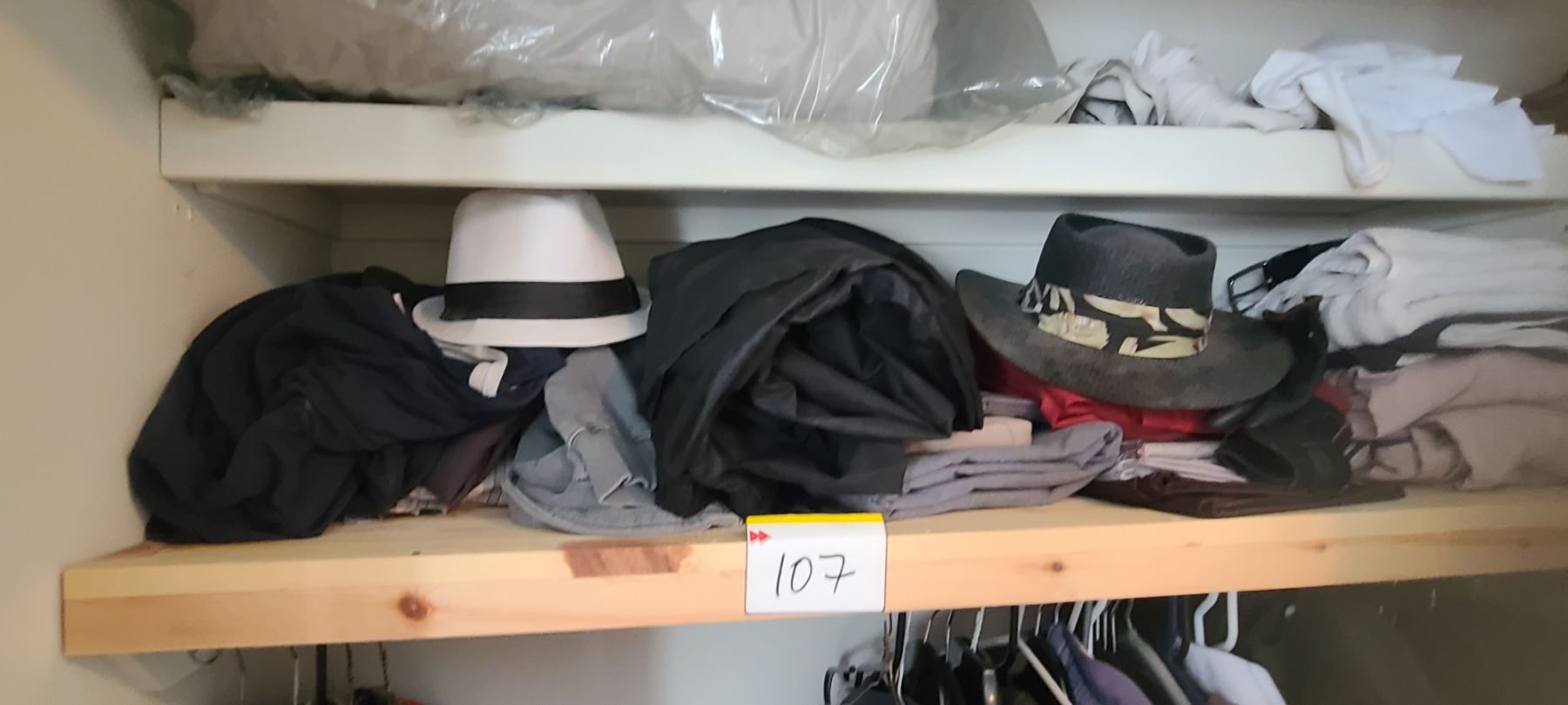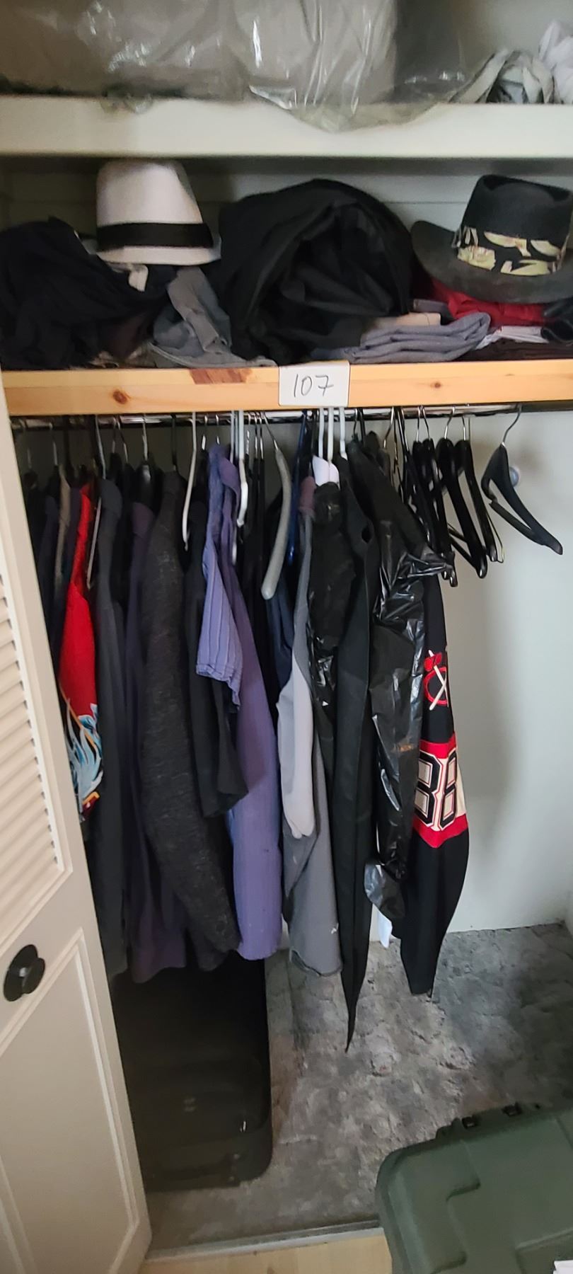 BED FRAME/BOX SPRING PLUS ALL ITEMS IN LEFT SIDE CLOSET INCL BLACK HAWKS JERSEY