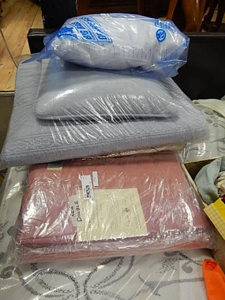 BED SPREAD & PILLOW - TWIN & 2 OTHER BLANKETS