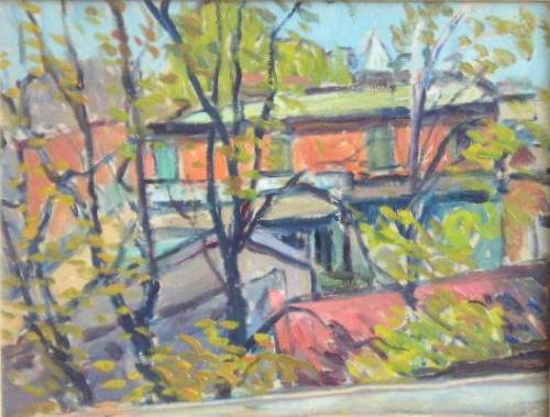 BEDER, Jack, 1910-1987. "Spring Time". Huile sur panneau, signée. Oil on board, signed. 10" x 13" - 25.4cm x 33cm.