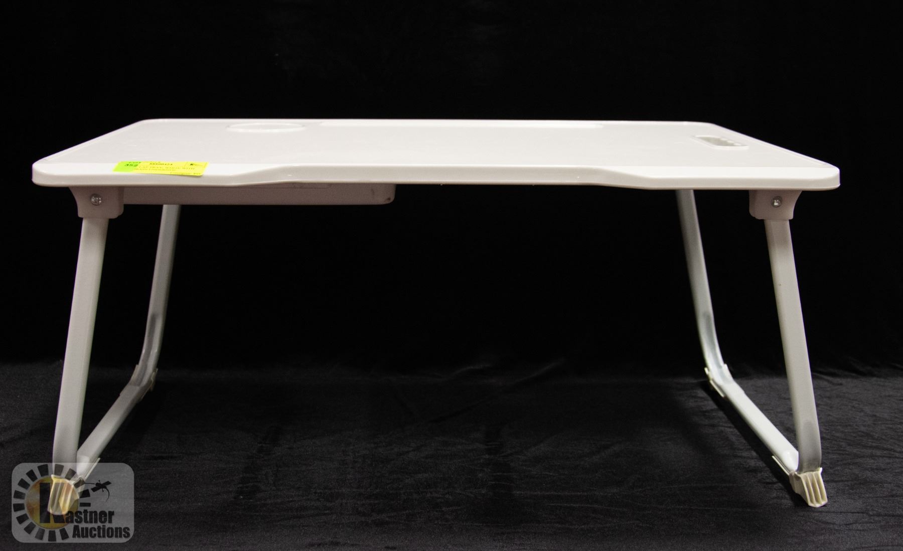 FOLDING LEGS, SIDE DRAWER, CUP HOLDER AND TABLET SLOT, APPROX. 24" X 16"