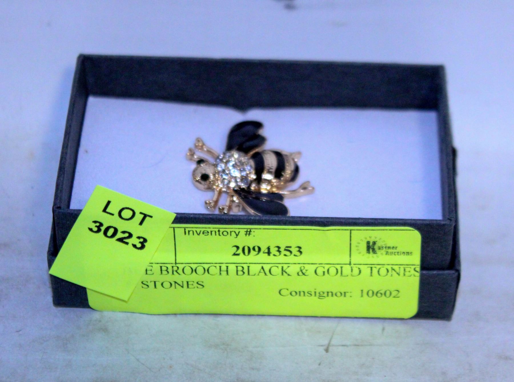 BEE BROOCH BLACK & GOLD TONES & STONES