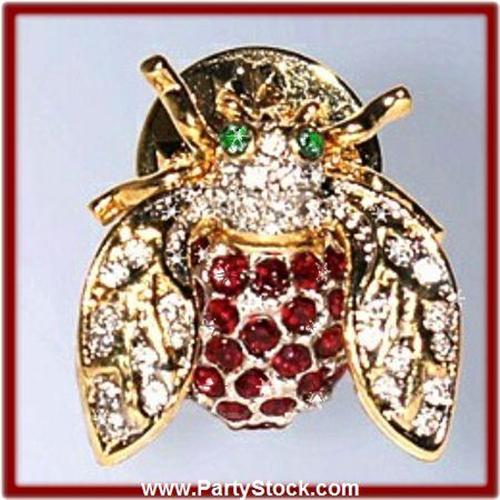 BEE PIN BROOCH 24K GOLD & RED SWAROVSKI CRYSTALS