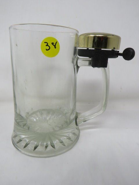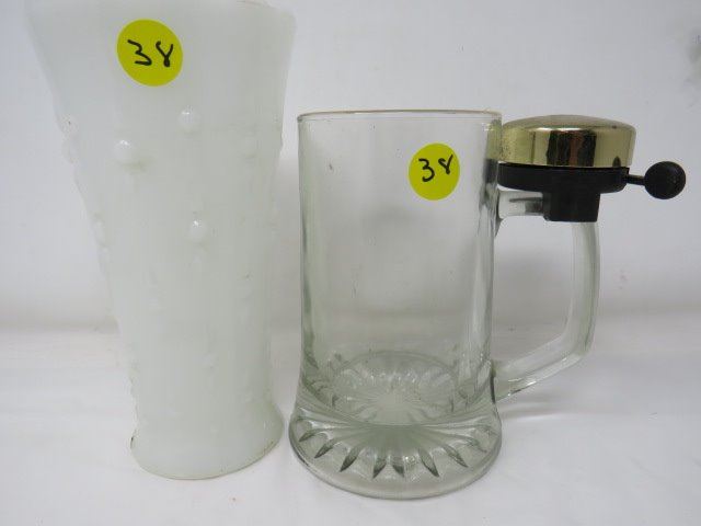 BEER STEIN (W/BELL) & WHITE GLASS VASE