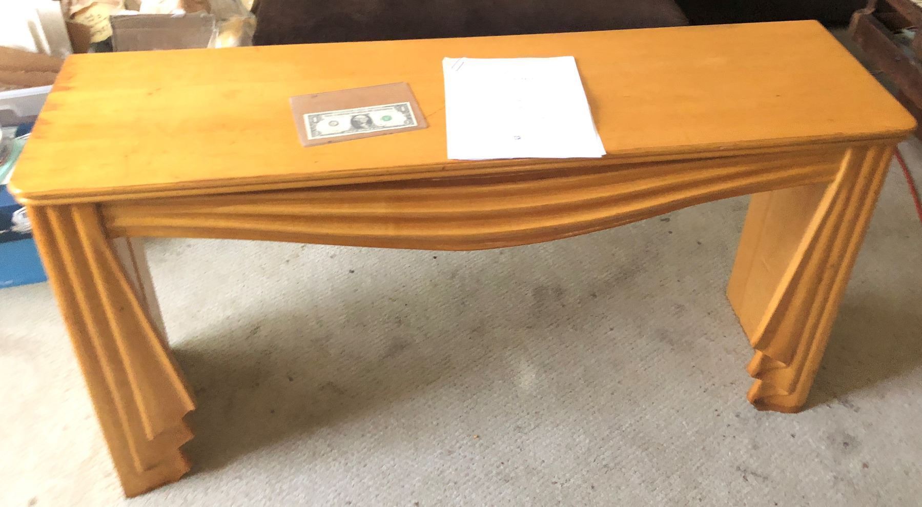 OOAK! Made of all hand carved wood, but the desk top is veneer which shows some slight wear around the edges. Excellent condition overall! No scratches, gouges, or cracks. Excellent pieces to re-purpose as actual Home Decor!