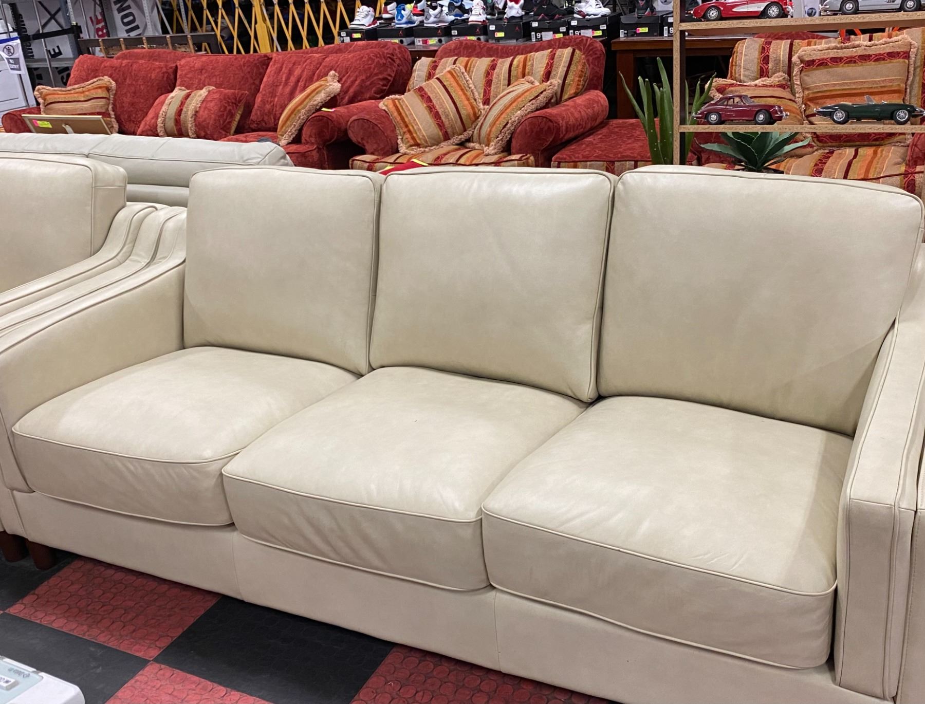 BEIGE GENUINE LEATHER SOFA, LOVESEAT & CHAIR SET