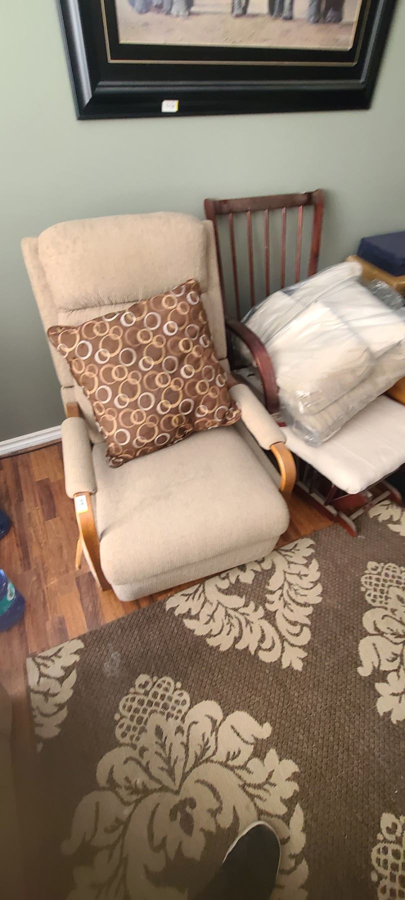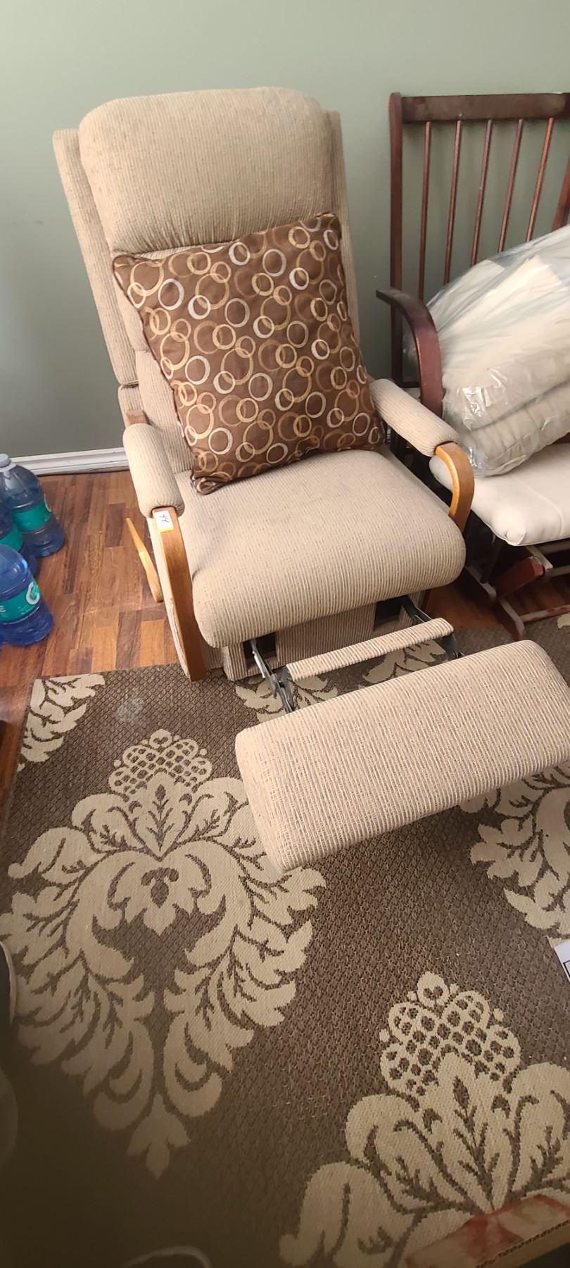 BEIGE RECLINER AND ROCKING CHAIR WITH GLIDER AND OTTOMAN